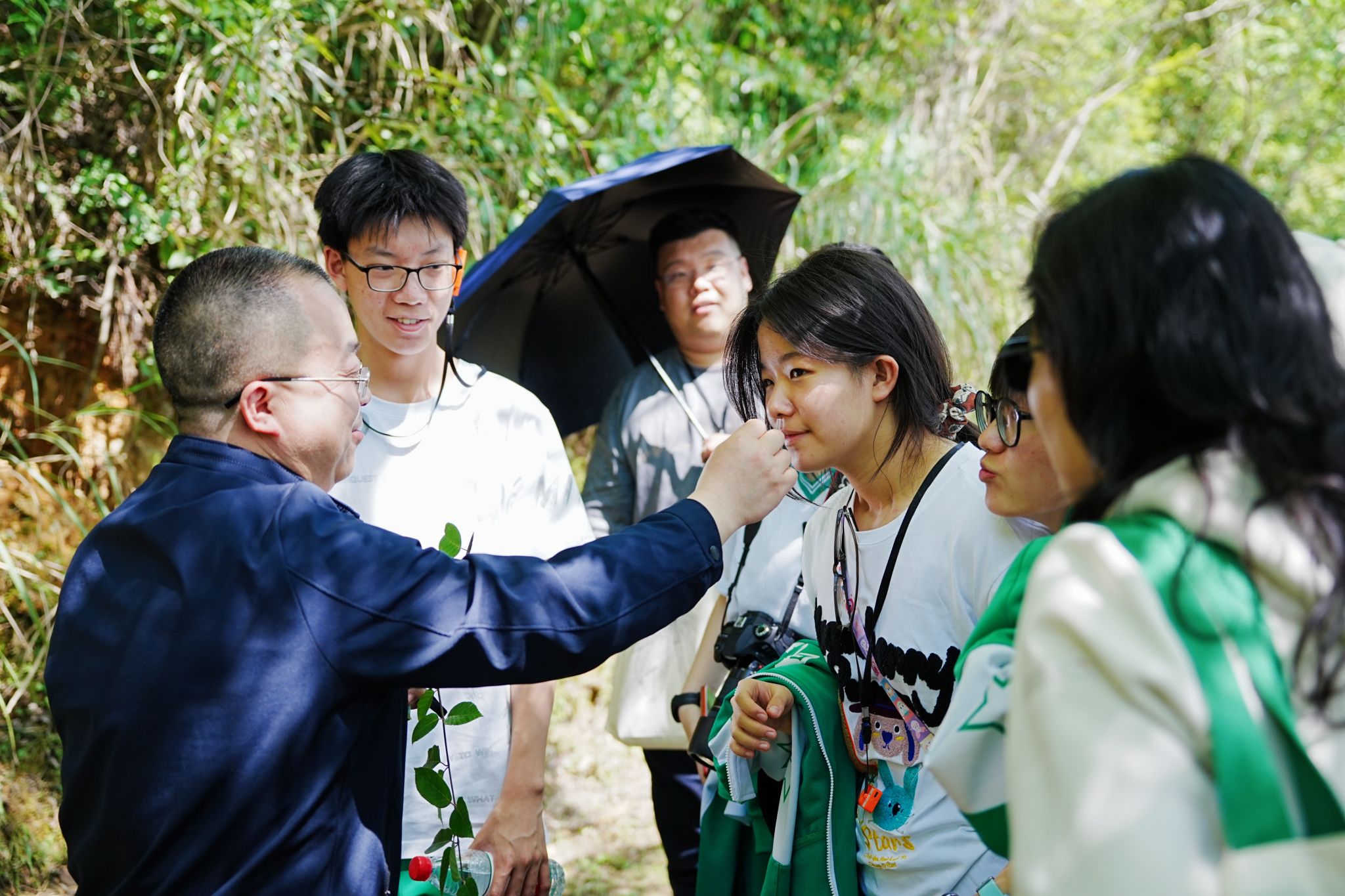 B团继续走入华西亚高山植物研究所,群山环绕,林木苍翠。在科研人员指导下,同学们观察植物生态,采集样本,制作拓印标本,将自然的形态与肌理悉心记录。