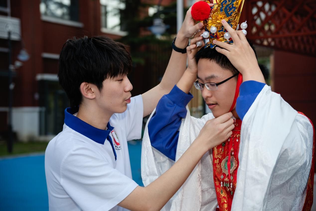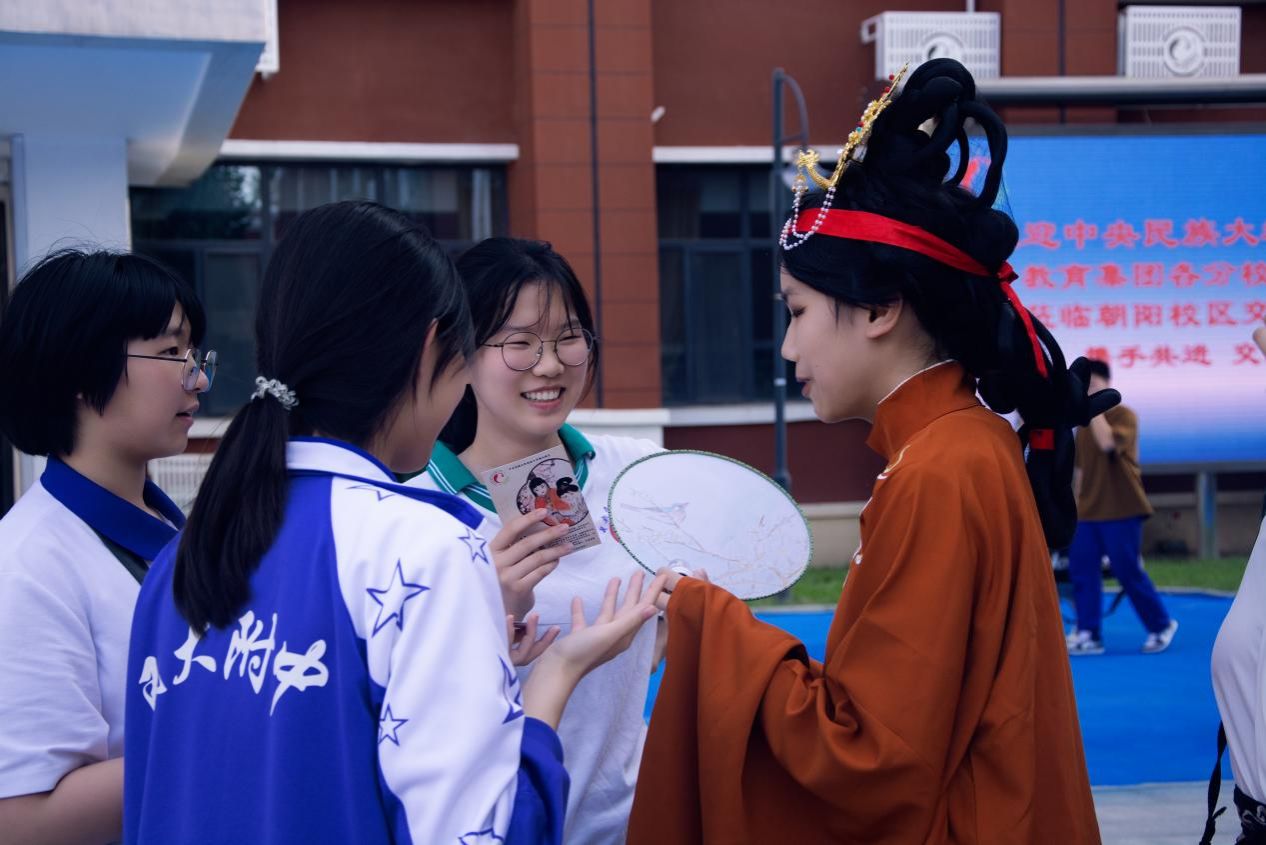 2025年5月15日下午,民大附中朝阳校区红楼书香与同学们的欢声笑语交织,一场沉浸式的红楼文化盛宴在小广场徐徐拉开帷幕。本次活动是语文节活动的第二阶段。经过第一阶段的节目展演,欣赏完舞台上的人间况味,同学们今日亲身走进经典中,体会文化之美。