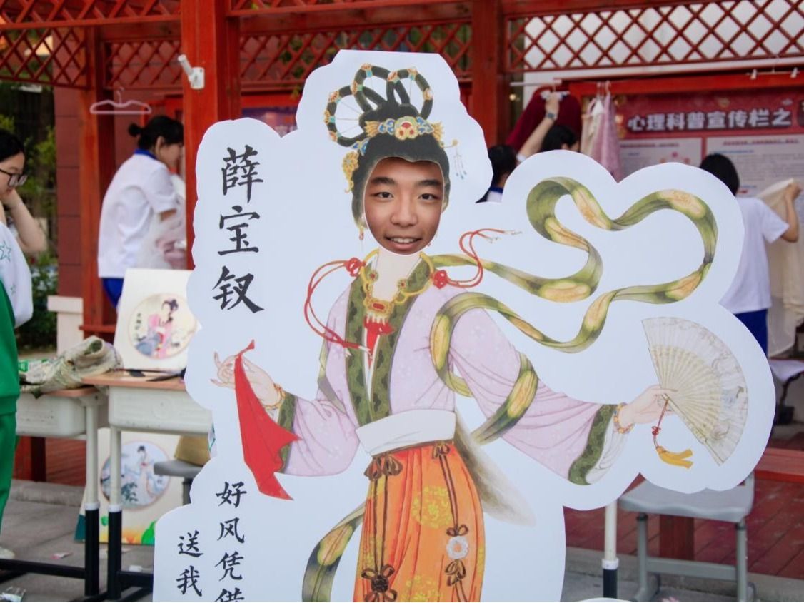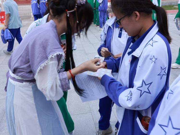 黛玉、宝钗、王熙凤、探春、湘云、晴雯等红楼人物现身游园会,给同学们带来惊喜互动:听黛玉吟诗、看王熙凤妙语连珠、与宝钗探讨为人处世……每与一位角色扮演者互动,就能获得一个独特的印章。