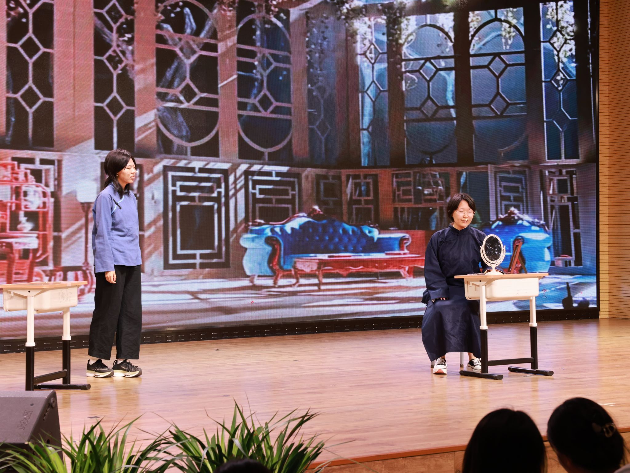 高一4班同学还原了贾府几代人的思想矛盾,又以一曲《枉凝眉》为背景,展现了宝黛之间的细腻情感,惹得现场同学笑中有泪。