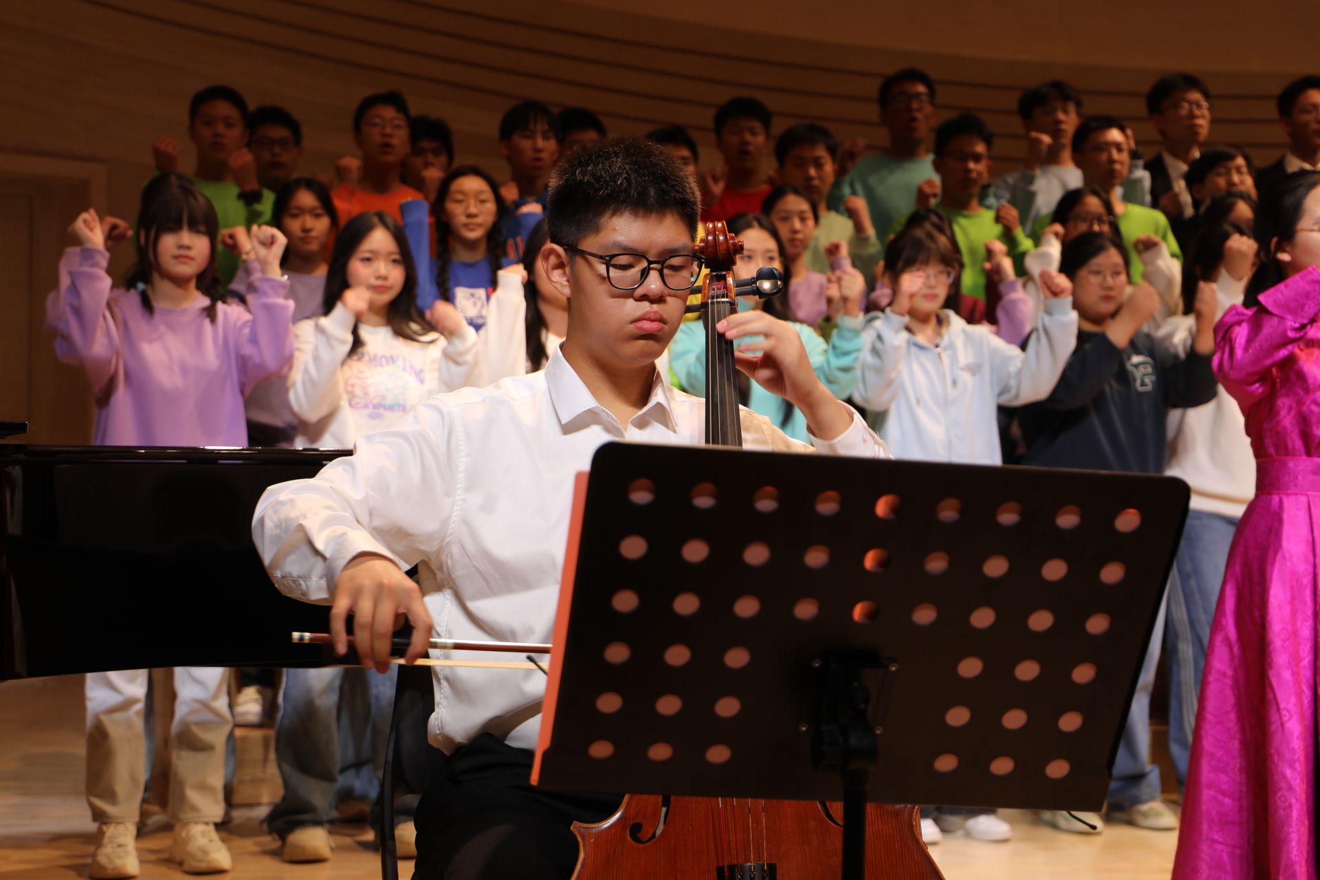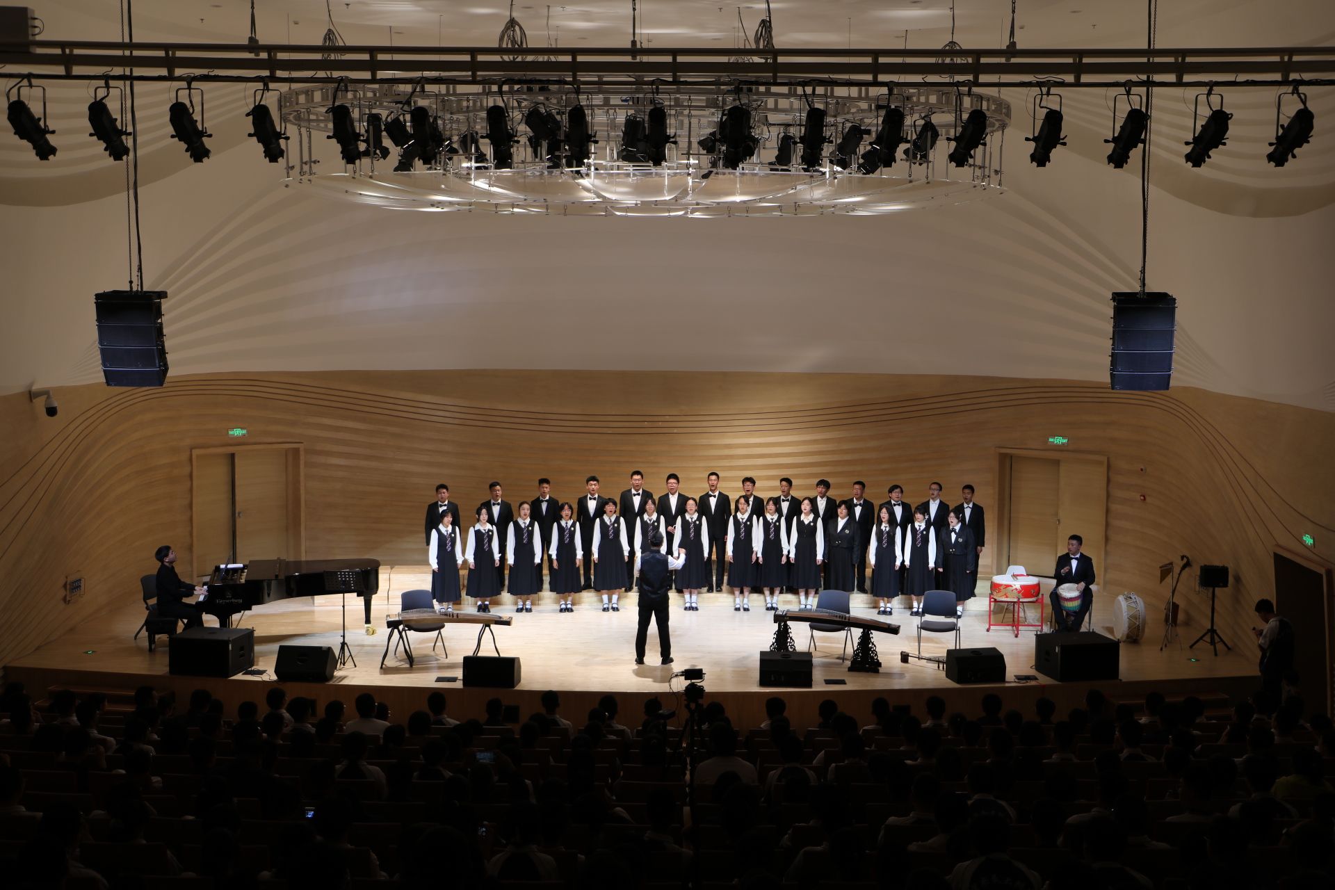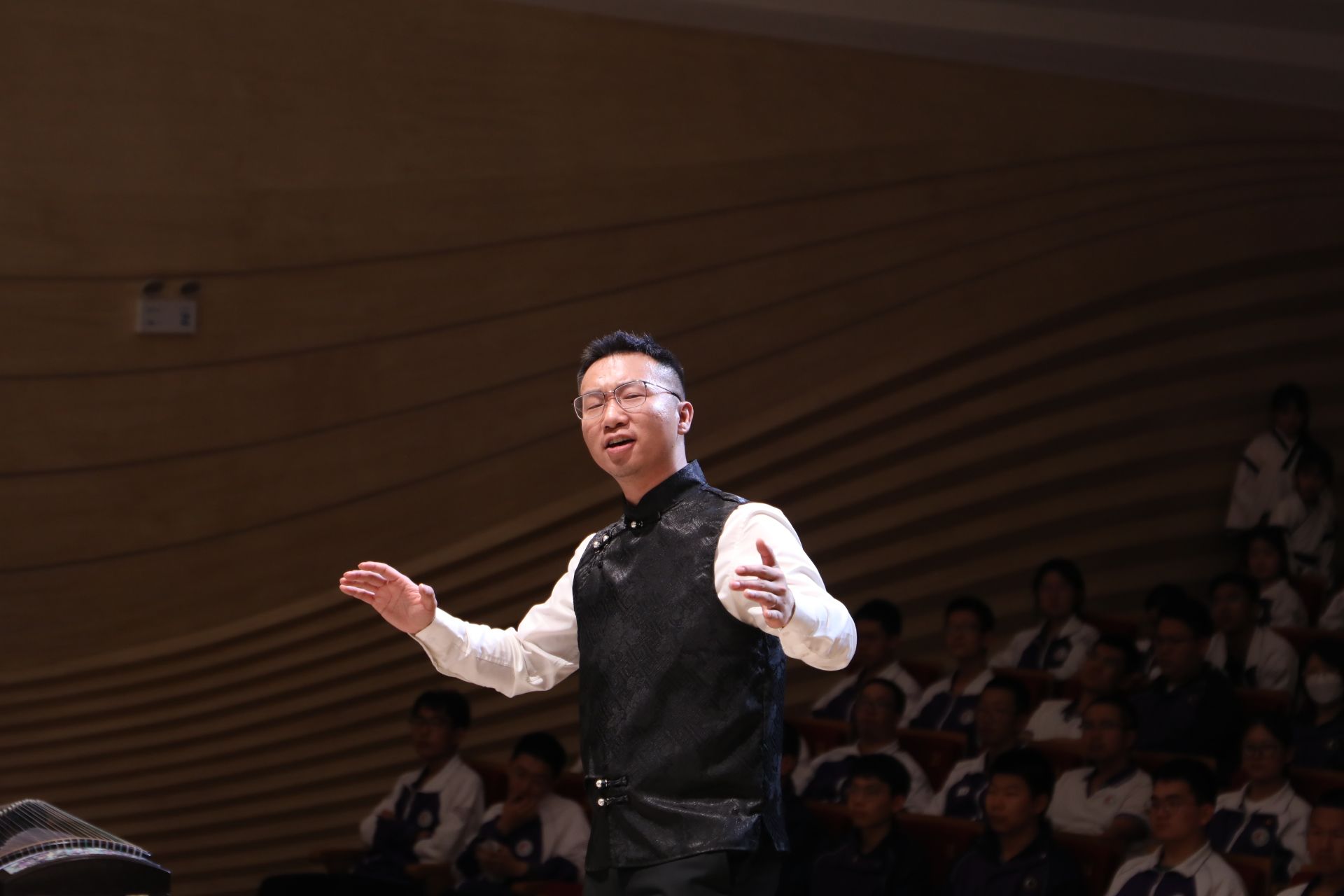 分校许可老师指挥青橙合唱团带领观众开启了一场心灵与文化的深度对话,以《找自己》叩问内心,以《家园》倾诉故土深情,以《小雅·鹿鸣》的古典雅韵,重现《诗经》中的宴饮之美。