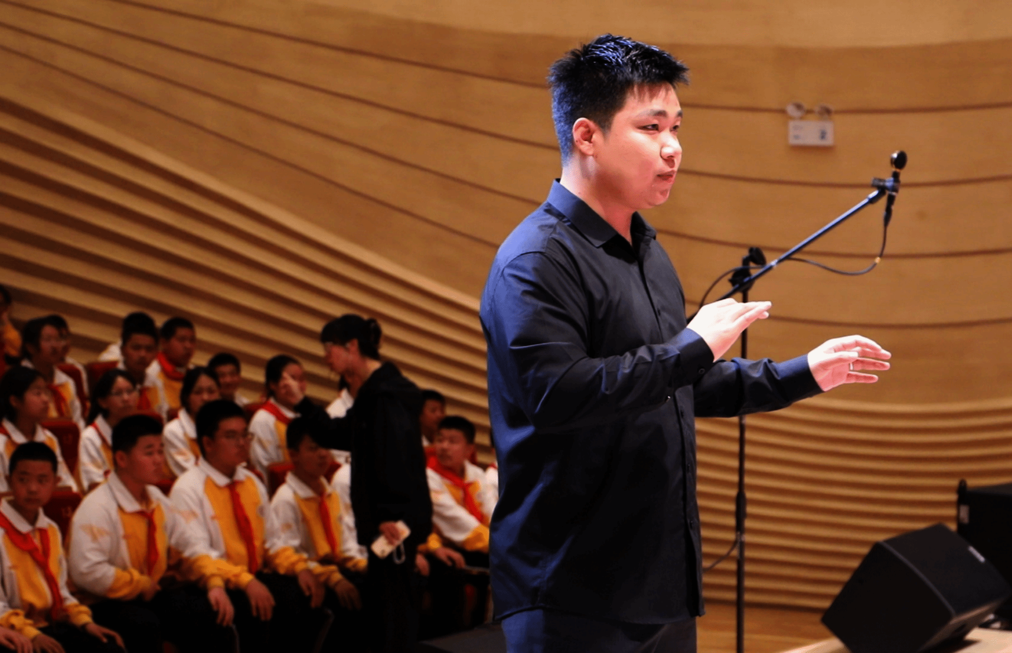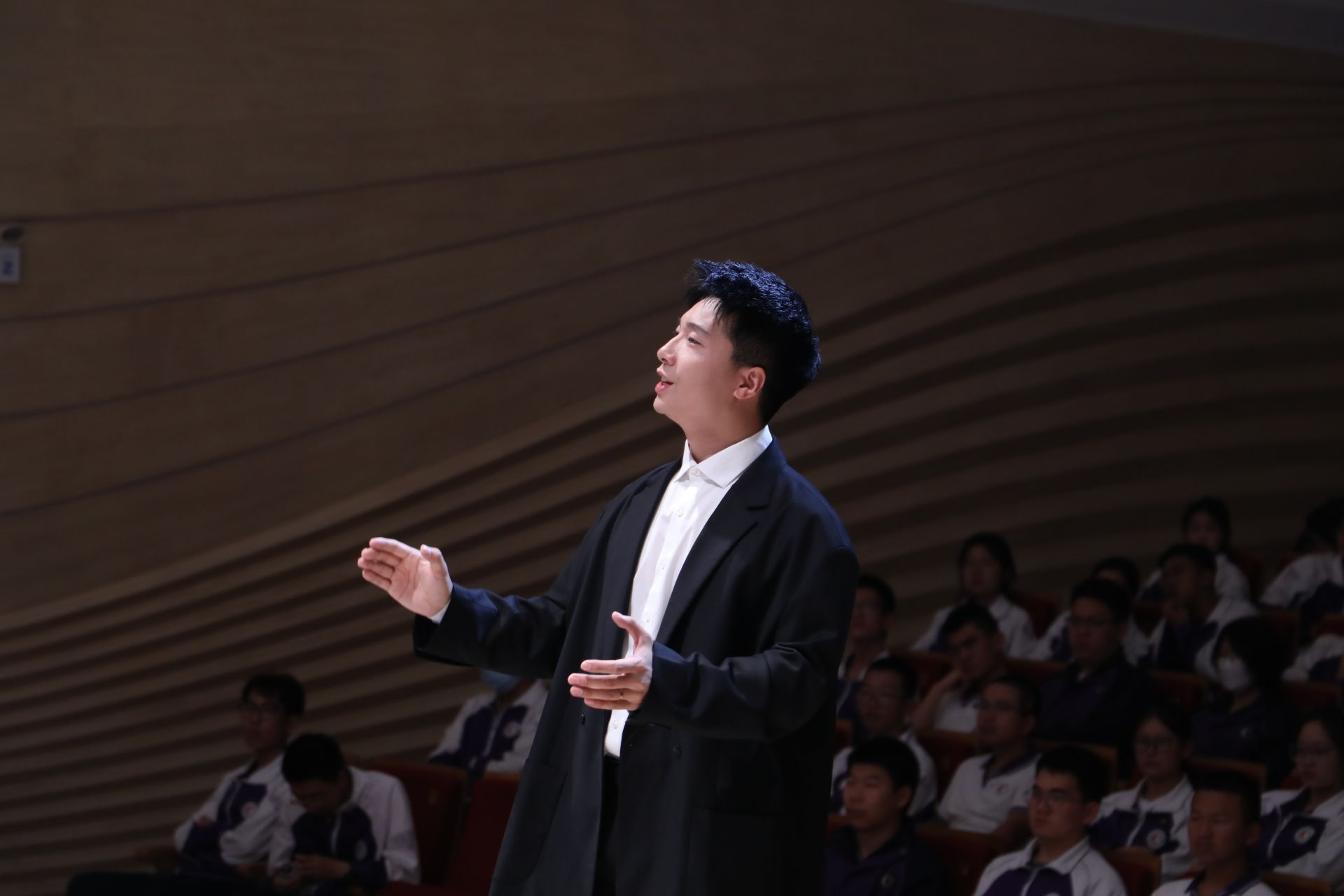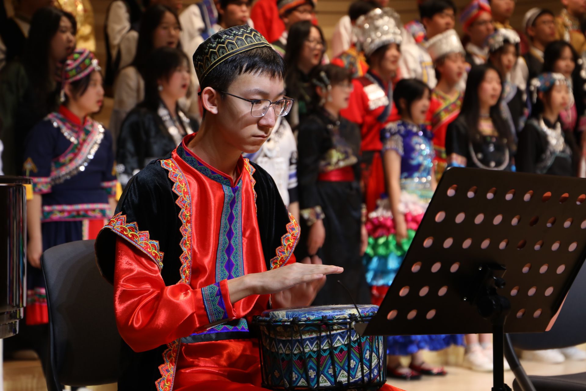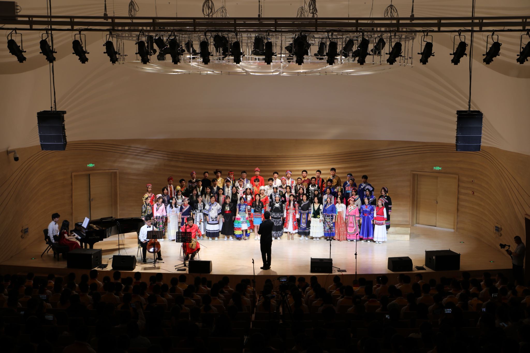 分校许可老师指挥青橙合唱团带领观众开启了一场心灵与文化的深度对话,以《找自己》叩问内心,以《家园》倾诉故土深情,以《小雅·鹿鸣》的古典雅韵,重现《诗经》中的宴饮之美。
