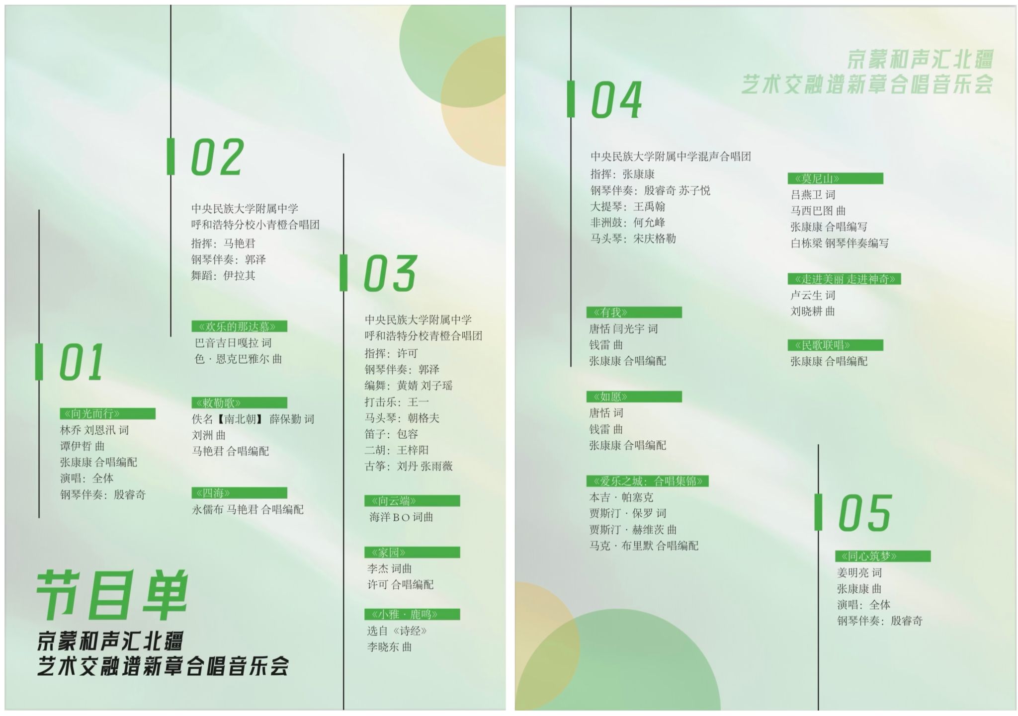 且看风吹草低的辽阔。民附呼市分校小青橙合唱团在音乐教师马艳军老师的指挥下,以《四海》诉说人间温情,以《敕勒歌》吟诵苍茫天地,以《欢乐的那达慕》重现盛会狂欢,带我们走进草原的诗意与豪迈。