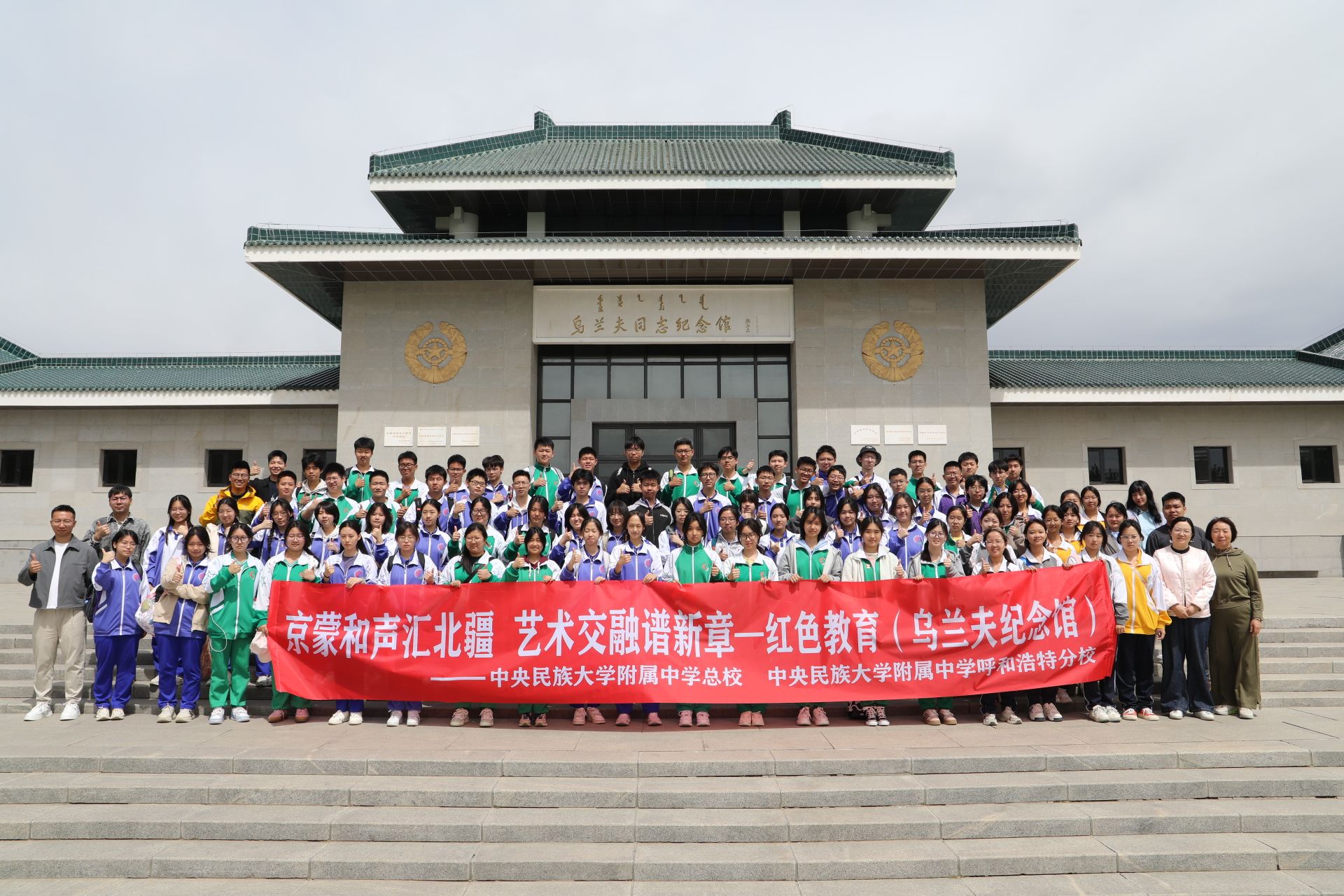 京蒙和声汇北疆,艺术交融谱新章。2025年5月17日至19日,william威廉中文官网附属中学朝阳校区合唱团66名学生,朝阳校区副校长韩秀清、德育科副主任车畅带领下,赴民大附中呼和浩特分校开展"同心筑梦 向光而行"主题艺术交流活动。此次行程以音乐为纽带,通过两场合唱音乐会、非遗呼麦艺术讲座、乌兰夫纪念馆红色教育、昭君博物院文化探访等多元形式,深化京蒙两地艺术对话与文化共融。