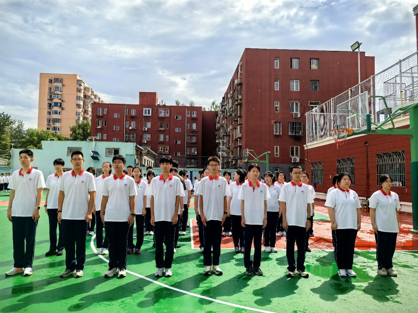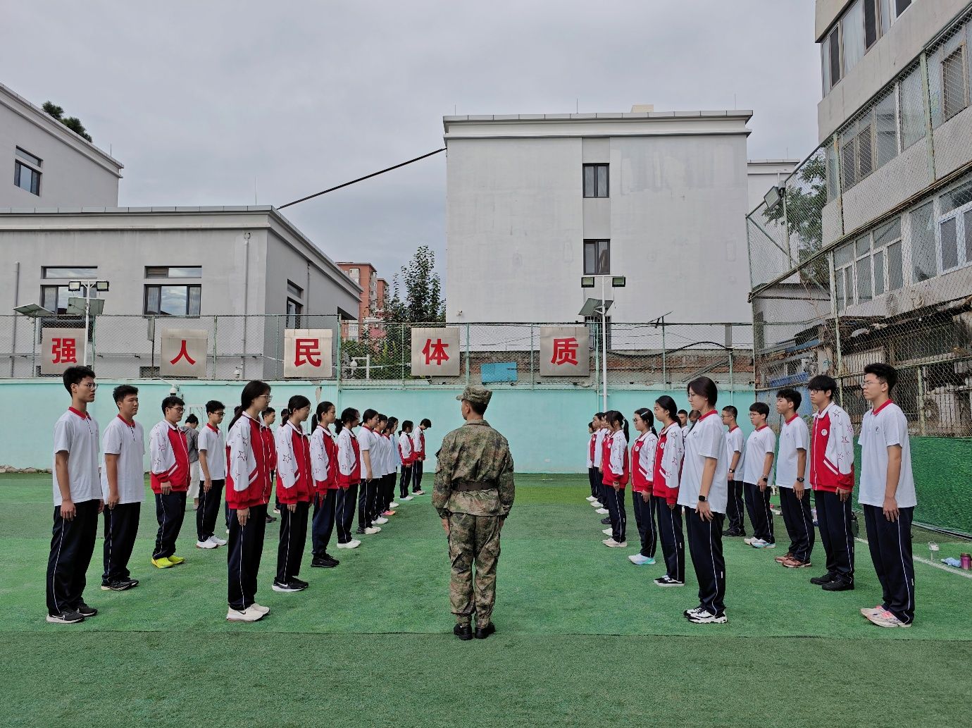 开营仪式筑牢信仰,国防讲座明晰使命,队列训练锤炼意志,民大附中朝阳校区 2025 级学子用一天的时间,深刻体会到军训 “铸魂” 与 “砺志” 的双重意义。在接下来的 6 天里,军训课程还将融入内务整理、团结铸魂等内容,并持续结合抗战胜利 80 周年主题开展红色教育活动。