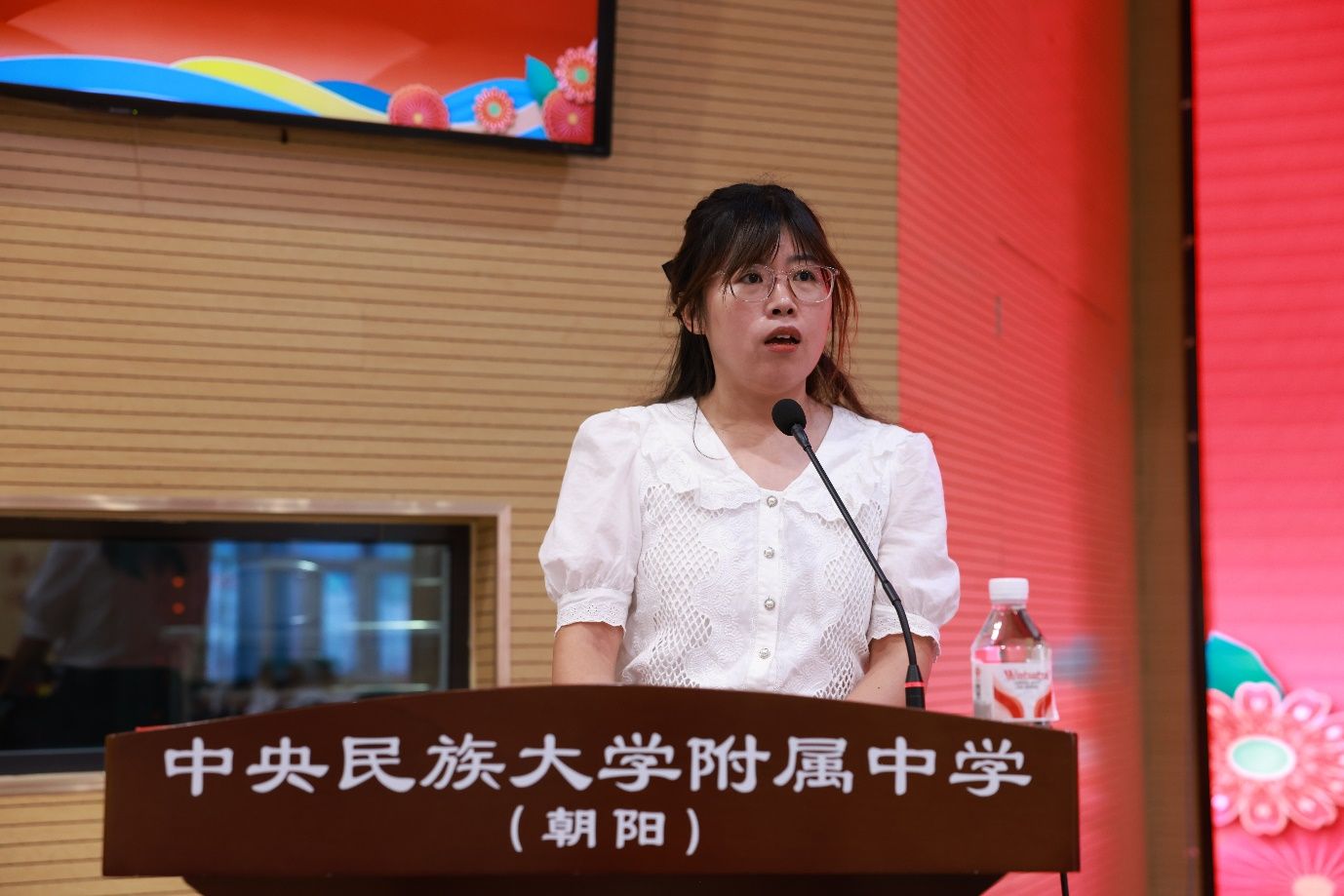 教师代表、高一年级3班2组布素蕾老师以“陪伴者与见证者”的身份登台,她将高中生活比作激昂交响乐,军训则是铿锵序曲。站军姿、齐步走、拉歌赛等环节,都将让同学们洗去稚嫩,锻造刚强。她鼓励同学们在军训中严守纪律、团结协作、不怕困难、端正态度,因为军训不仅是对身体的考验,更是一堂家国情怀课,她号召学子们 “把‘请党放心,强国有我’的信念铸入灵魂,把个人梦想汇入时代长河,以青春之我,创建青春之国家、青春之民族”。