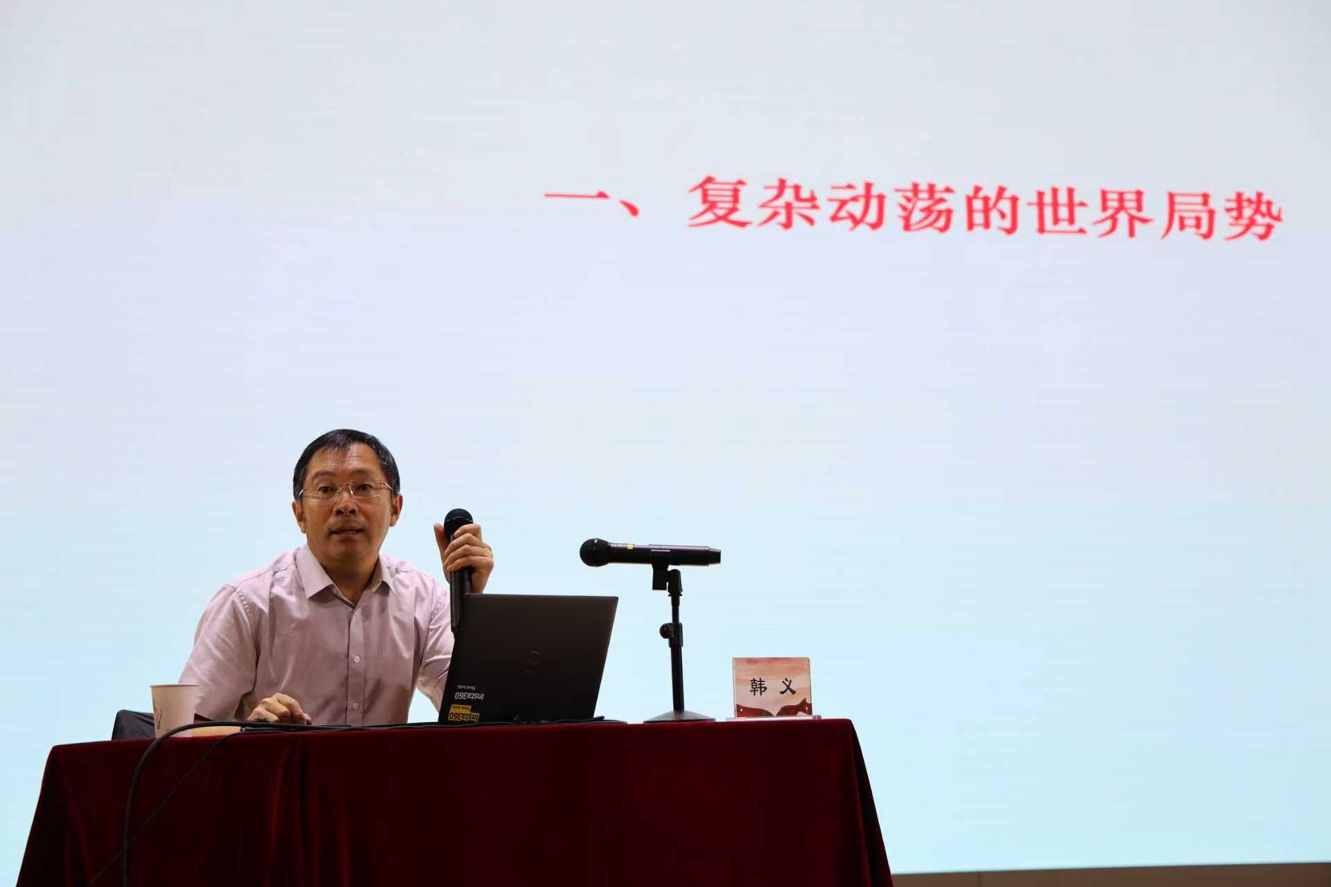 讲座主讲人韩义大校从 “复杂动荡的世界局势”、“国家安全的现实状况”、“军队装备的发展水平”、“应对挑战的基本策略” 四大维度展开讲解:从俄乌冲突的历史经纬、巴以冲突的人道主义困境,到美国对中国的战略围堵;从 1996 年台海危机、1999 年南联盟使馆被炸的 “历史警醒”,到辽宁舰、山东舰、福建舰的 “航母矩阵”,055 型导弹驱逐舰的 “海上盾牌”,东风 - 17、东风 - 21D 等 “大国重器” 的技术突破;更结合《孙子兵法》的中华智慧与毛泽东同志的战略思想,强调 “国防是外交的后盾,尊严只在剑锋之上”,号召青年学子树立 “国家认同、民族自尊”,传承 “一不怕苦、二不怕死” 的军人精神。