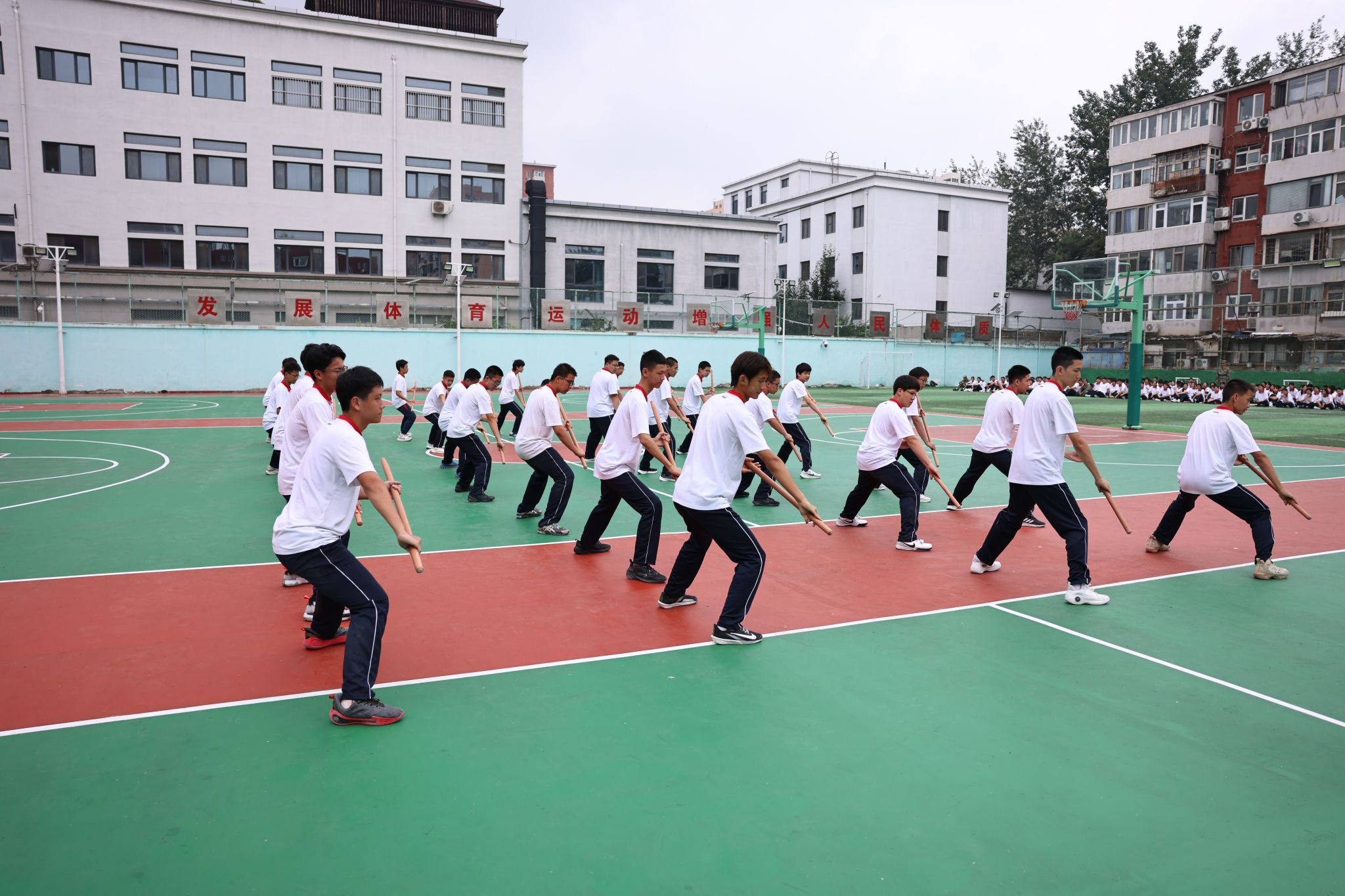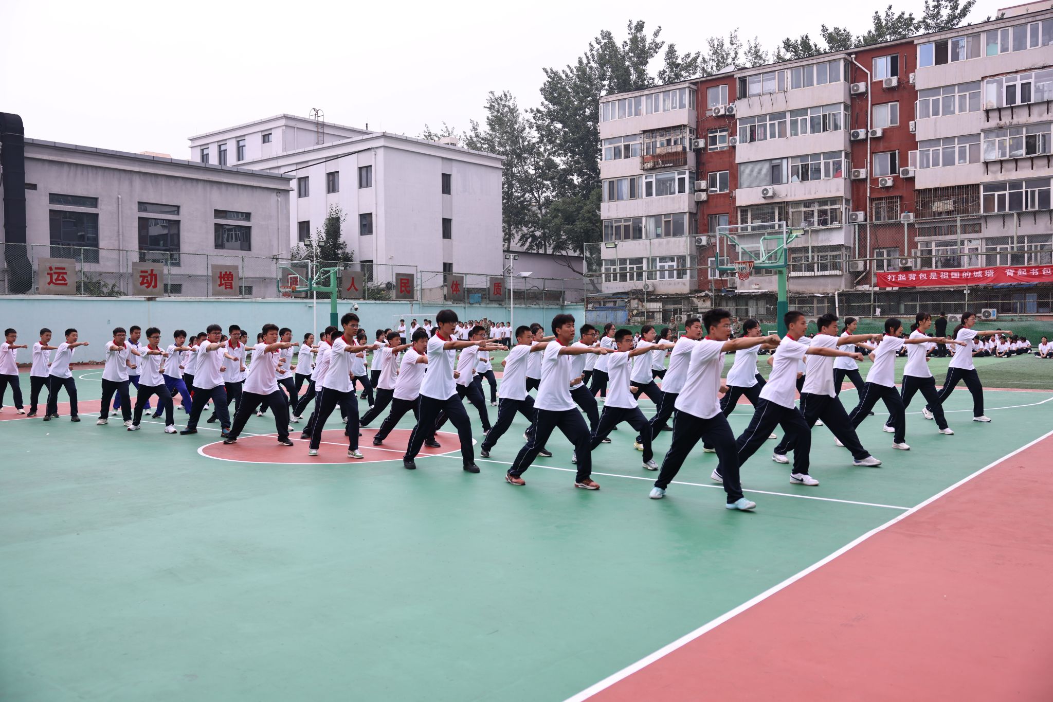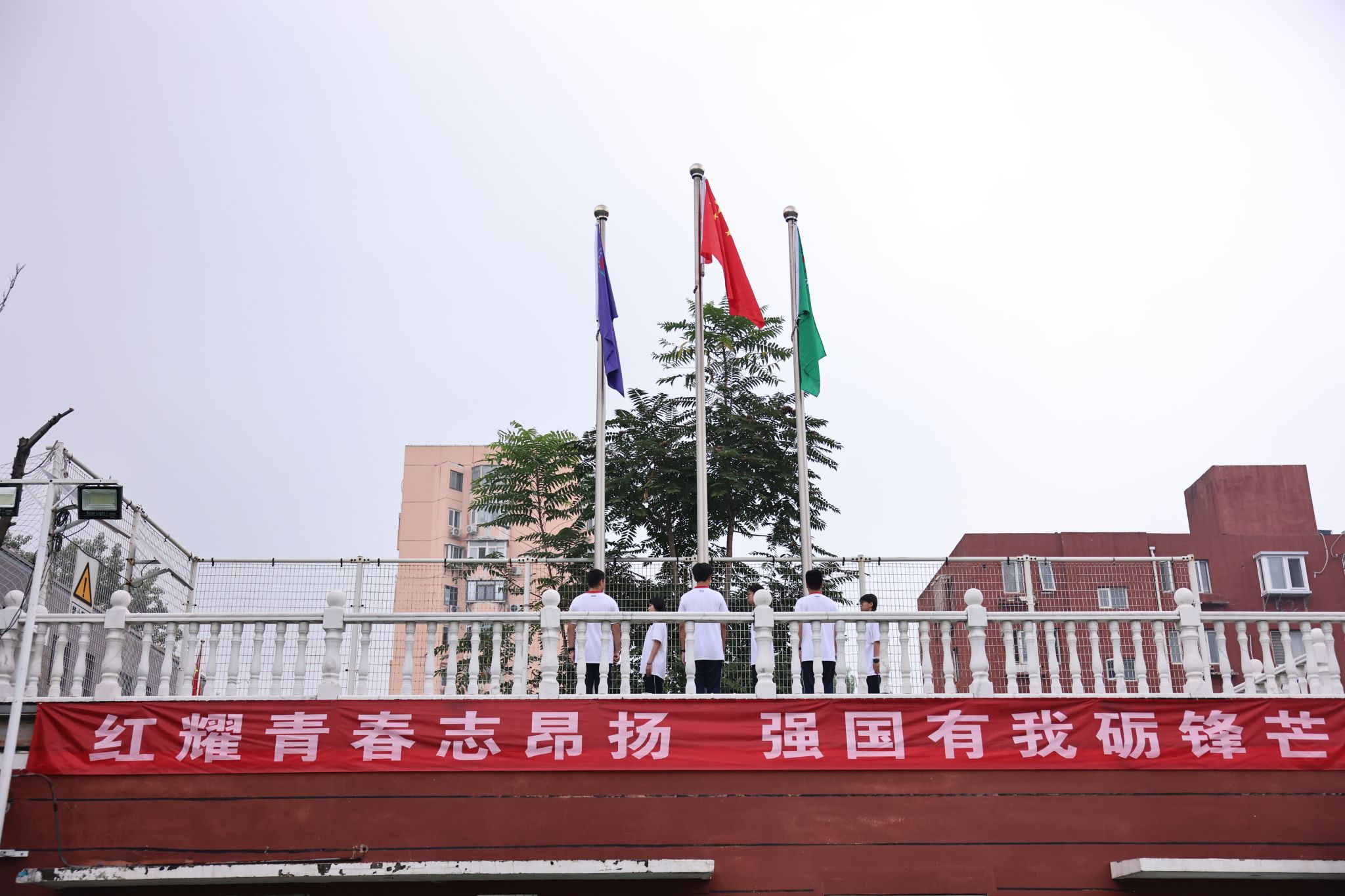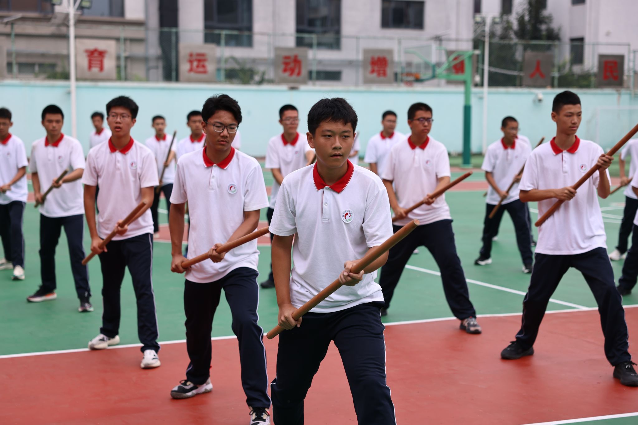仪式在庄严的升国旗、奏唱国歌中拉开序幕。全体人员肃立,五星红旗冉冉升起,迎风飘扬,在场师生与教官齐声高唱国歌、校歌,爱国情怀与青春朝气在操场上空交融。
