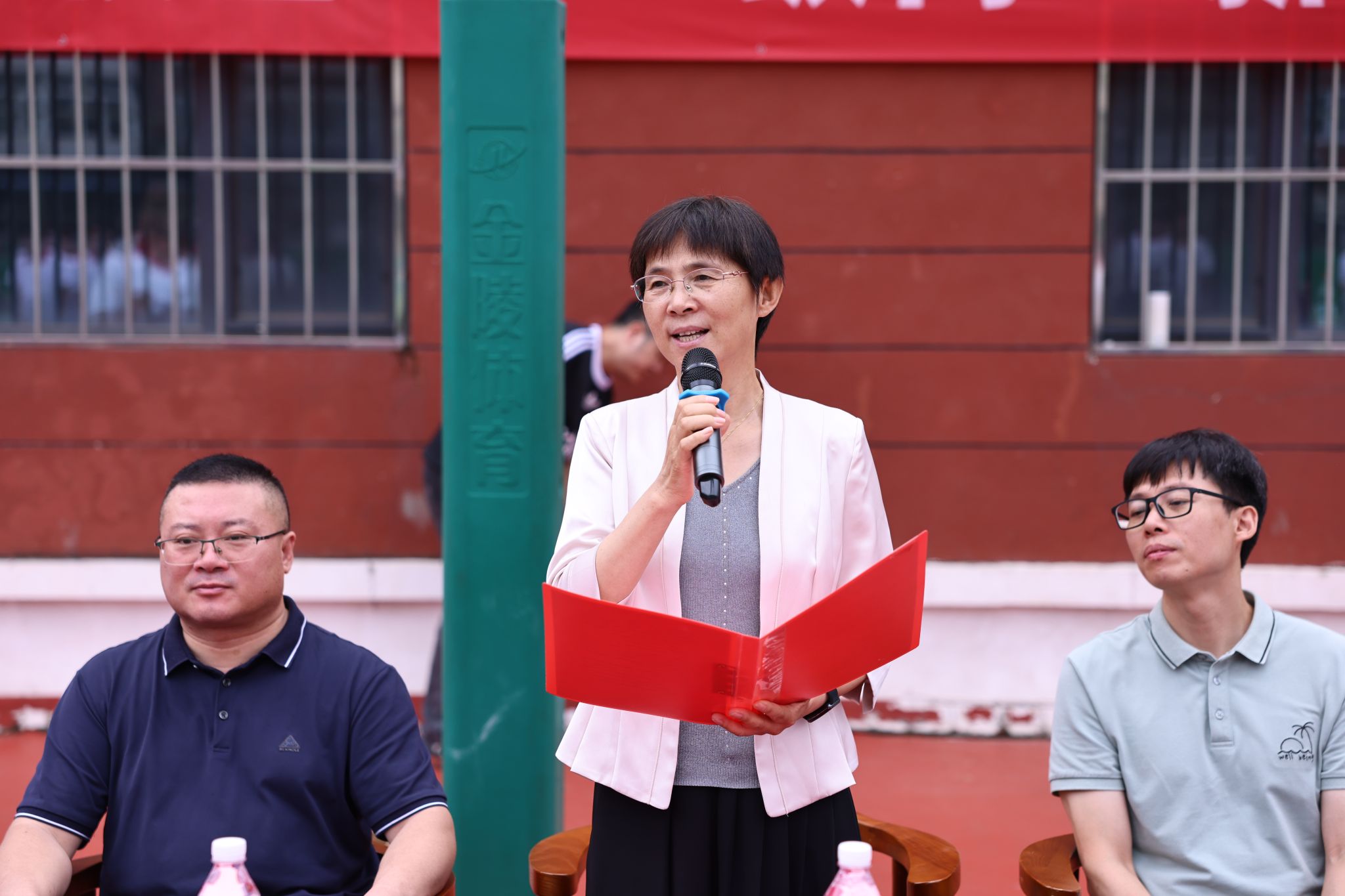 随后,校区副校长张立波在闭营式上致辞。她首先向圆满完成军训任务的新生们表示祝贺,向辛勤付出的教官和班级导师致以感谢。期望同学们能够矢志不渝地传承伟大的抗战精神,将此次军训历程中所深刻体悟到的爱国情怀、严明的纪律意识、强大的团结协作精神、无畏的迎难勇气以及坚韧不拔的顽强意志,全方位、深层次地融入到高中阶段的学习与生活中,以精神之火照亮前行之路,向下扎根,向上生长,以“请党放心、强国有我”的实际行动践行青春担当。