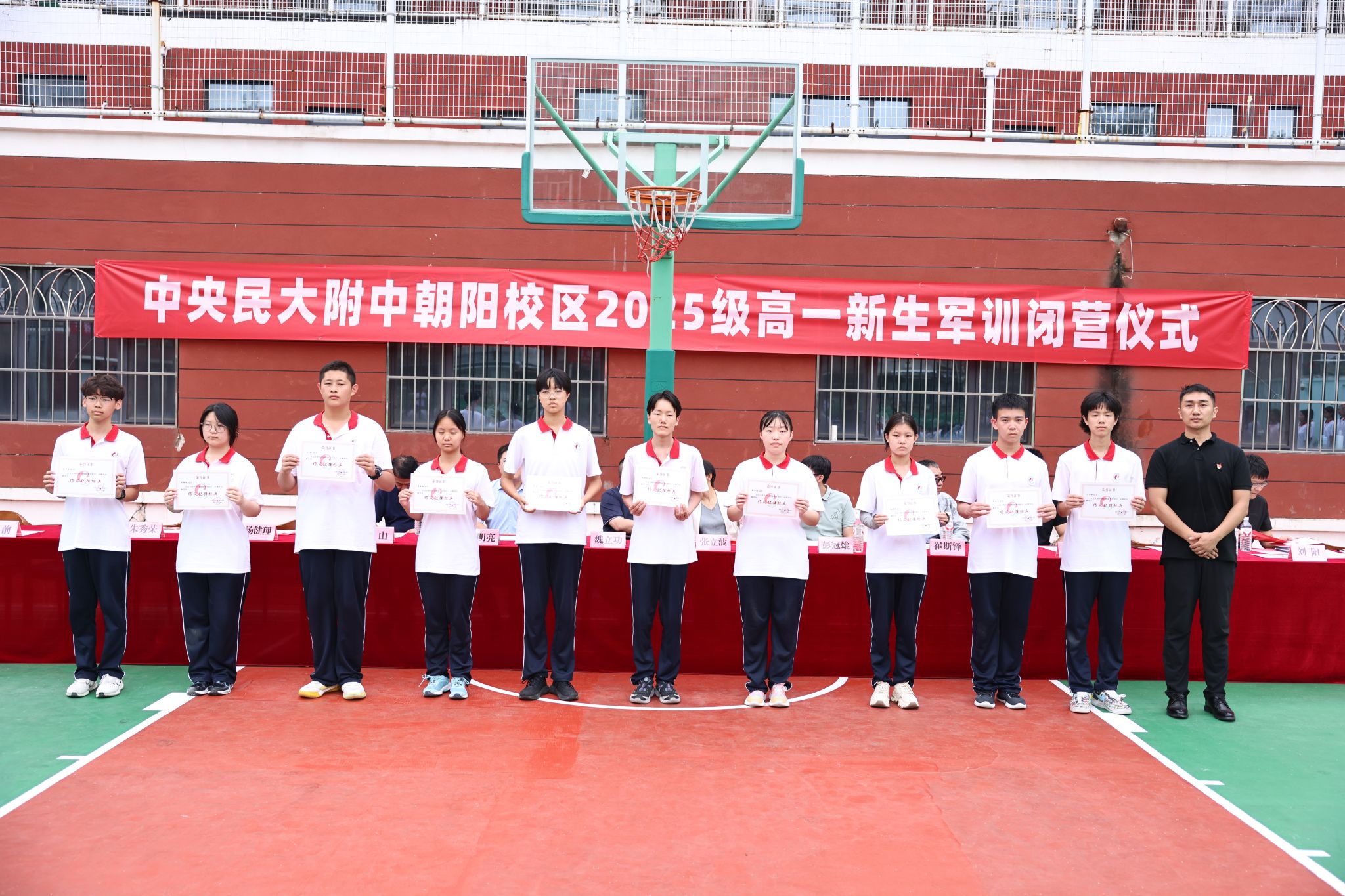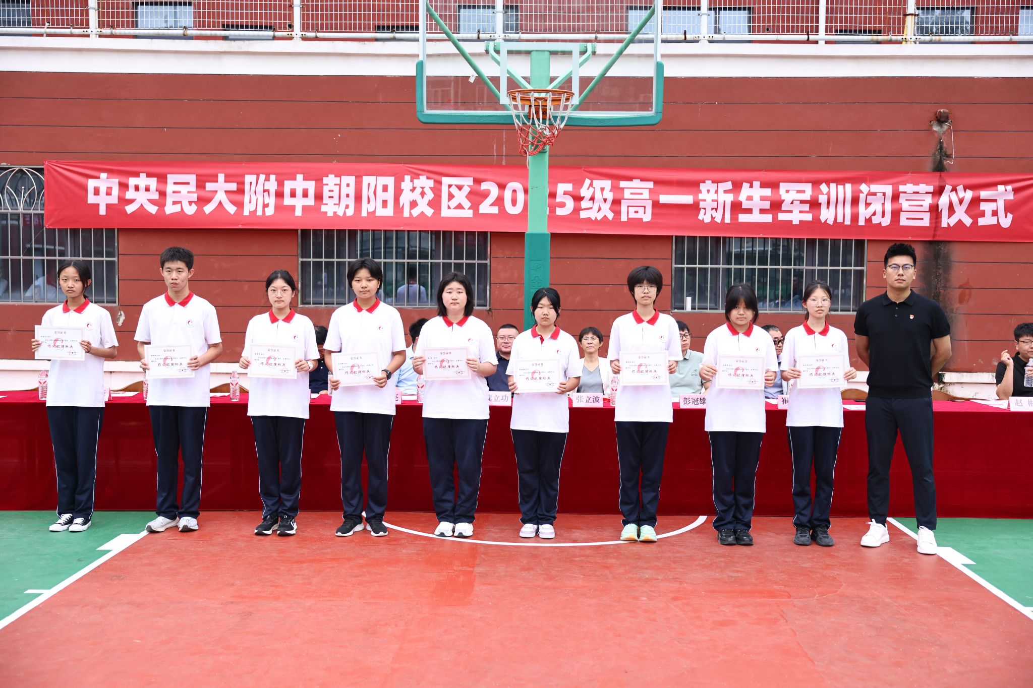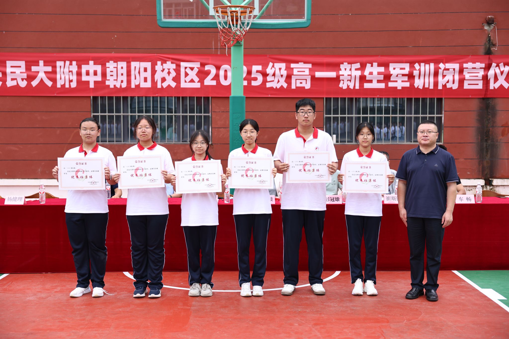 校区领导为军训期间表现突出的“训练标兵”“作风纪律”及“优秀个人”、“优秀班集体”颁发荣誉证书。既是对新生军训成果的总结,更是对他们未来高中生活的期许。期待新生们将军训中锤炼的意志品质转化为学习成长的动力,在青春的赛道上奋力奔跑。