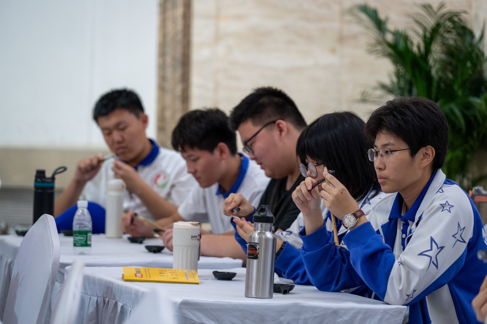 最受欢迎的当属湖笔制作体验区。在湖笔传承人张小凤老师的指导下,学子们分步骤体验择料、水盆、结头、装套等工序。同学们小心翼翼地将兔毫与羊毫按比例混合,反复梳理以去除杂质,“原以为做毛笔很简单,没想到光是选毛就要讲究软硬搭配,真是‘毫厘之间见匠心’。”经过半小时的专注操作,一支支亲手制作的湖笔陆续完成,同学们的脸上满是成就感。