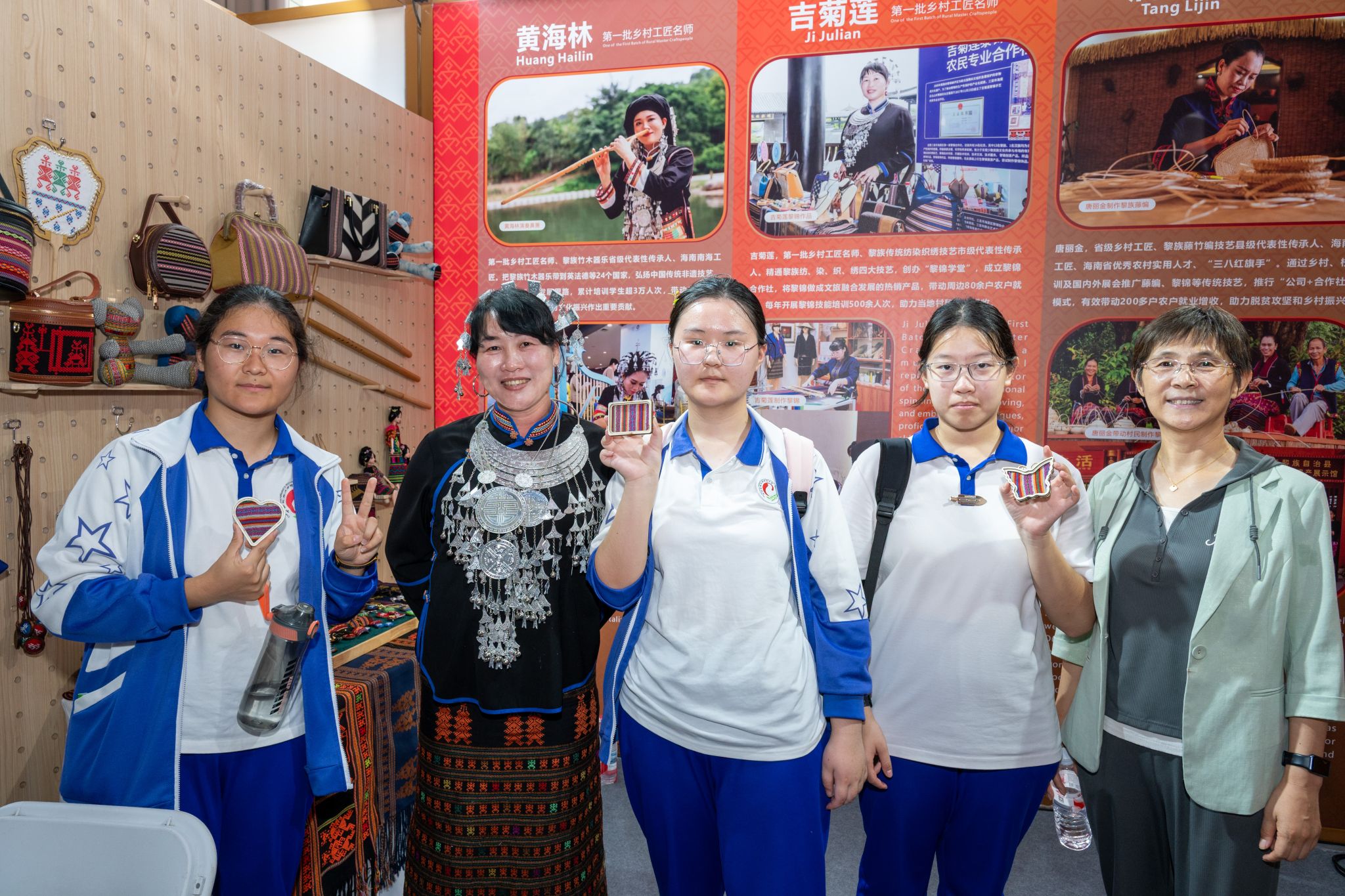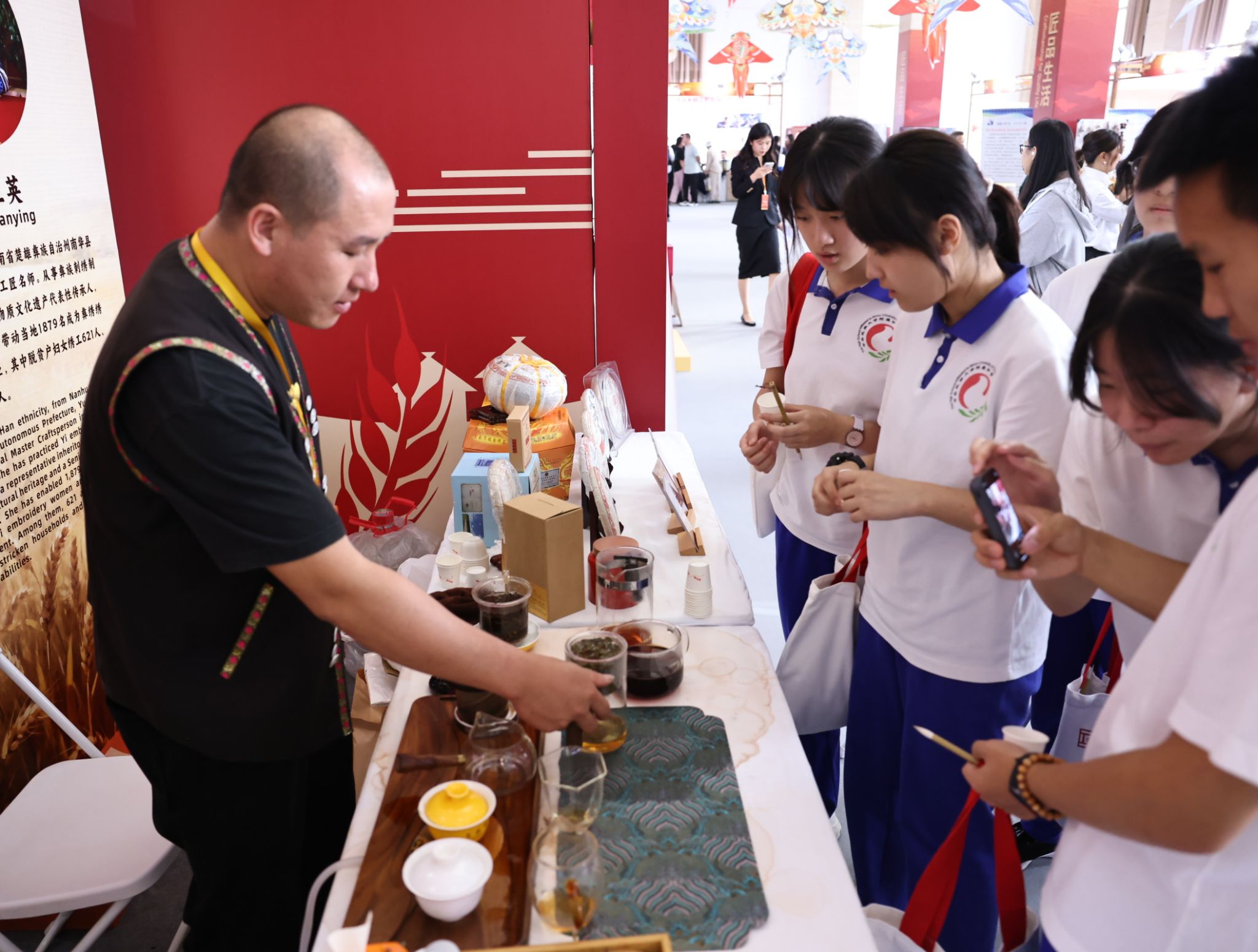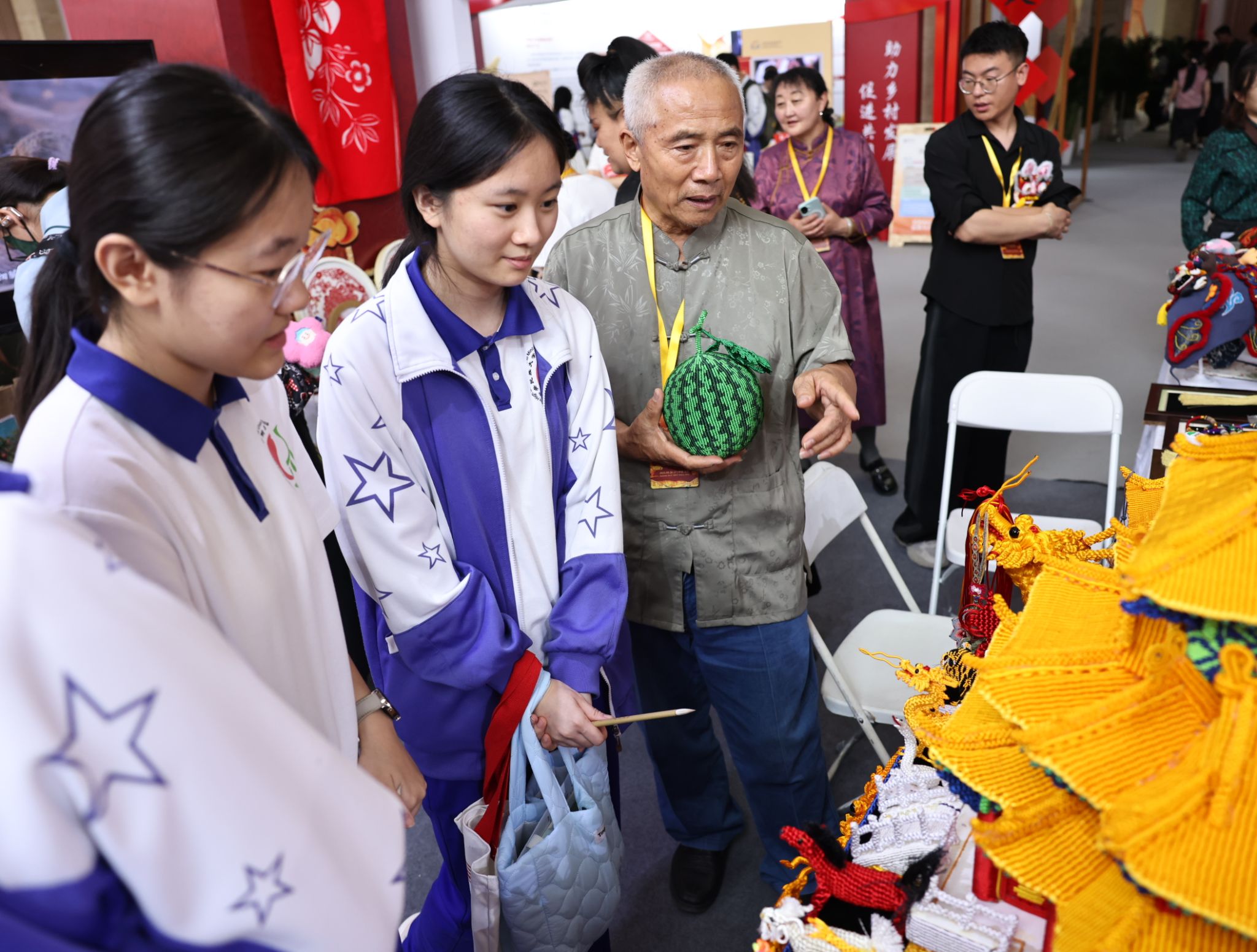 步入展馆,匠心传承主展区即刻吸引了学子们的目光。来自全国各个省、自治区、直辖市的50余名乡村工匠现场献艺,形成一道流动的“非遗风景线”。陕西剪纸传承人指尖翻飞,不到三分钟便剪出一幅“丰收瑞兽图”;浙江木雕师傅手持刻刀,在黄杨木上精雕细琢,牡丹花瓣的层次感渐次显现;云南陶艺工匠则演示着古老的拉坯技艺,转盘旋转间,一团陶土逐渐塑造成温润的茶盏。学子们围拢在展台前,或轻声询问技艺细节,或用手机记录创作瞬间,不时发出“太神奇了”“这得练多少年啊”的由衷赞叹。