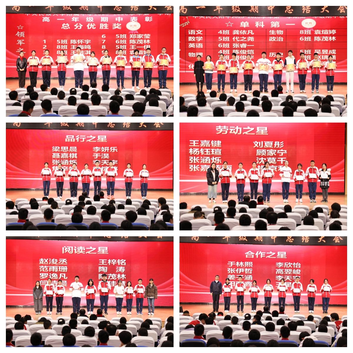 自开学以来近三个月的学习生活,同学们从习惯养成到学风建设,从自主独立到思想提升,他们在研学实践中突破自我,在探索求知中展望未来。这次被表彰的同学不仅包括期中考试成绩优异的学生,还包括了涵盖品行、勤学、运动、劳动艺术、创新等多个领域表现突出的"十星学子"。在“各美其美,美美与共”校训的引领下,全面展现学生的综合素质发展和多元个性成长,引导学生珍视自我价值、欣赏同伴所长,在校园内构建“各展其美、互鉴共进、和谐共生”的育人氛围。高一年级主任朱秀荣和副主任刘阳宣读了获奖名单。
