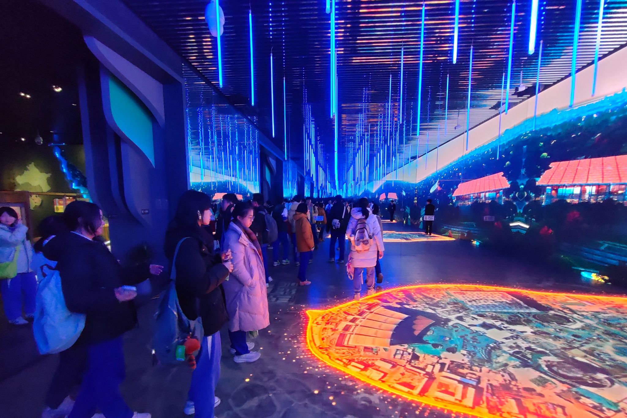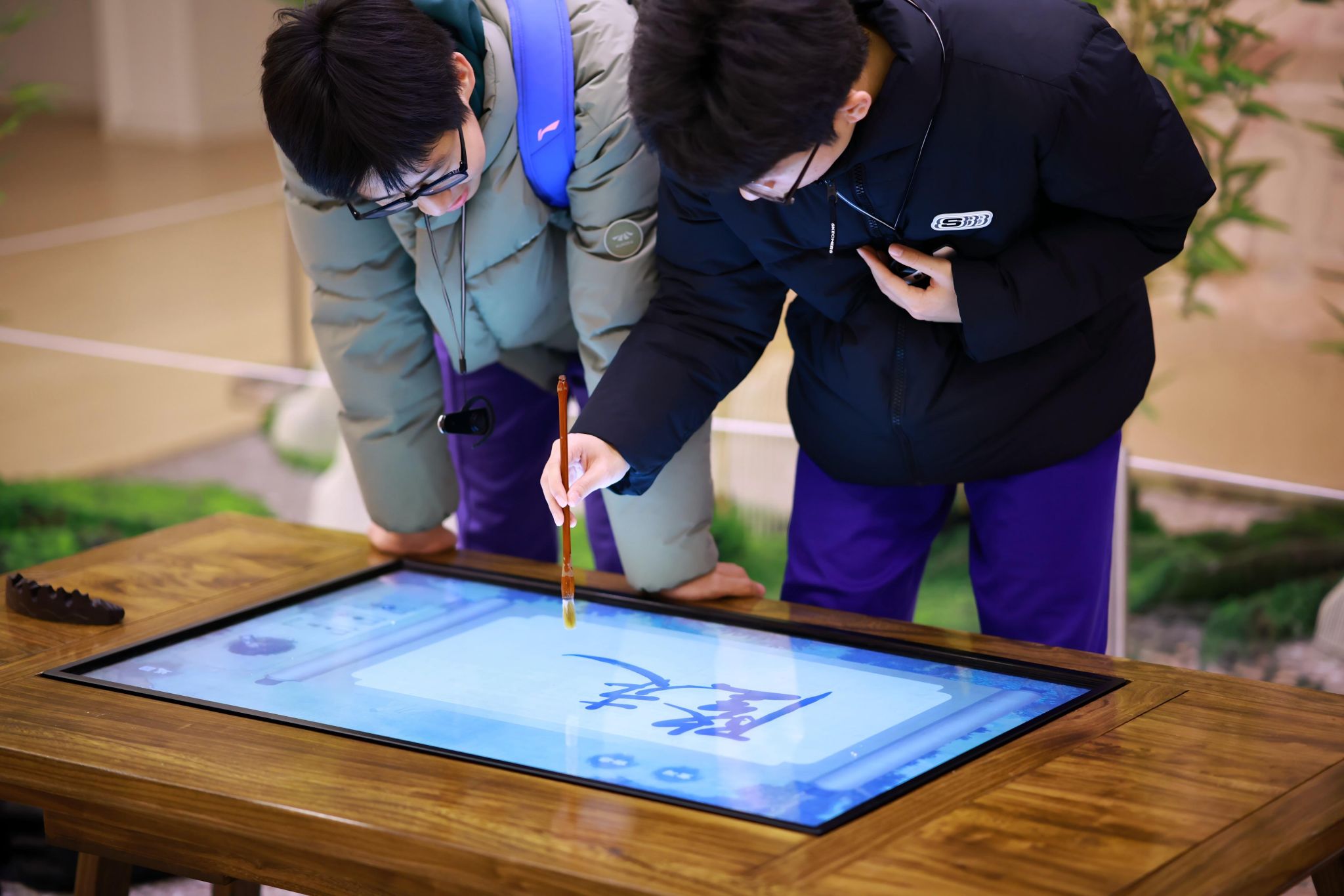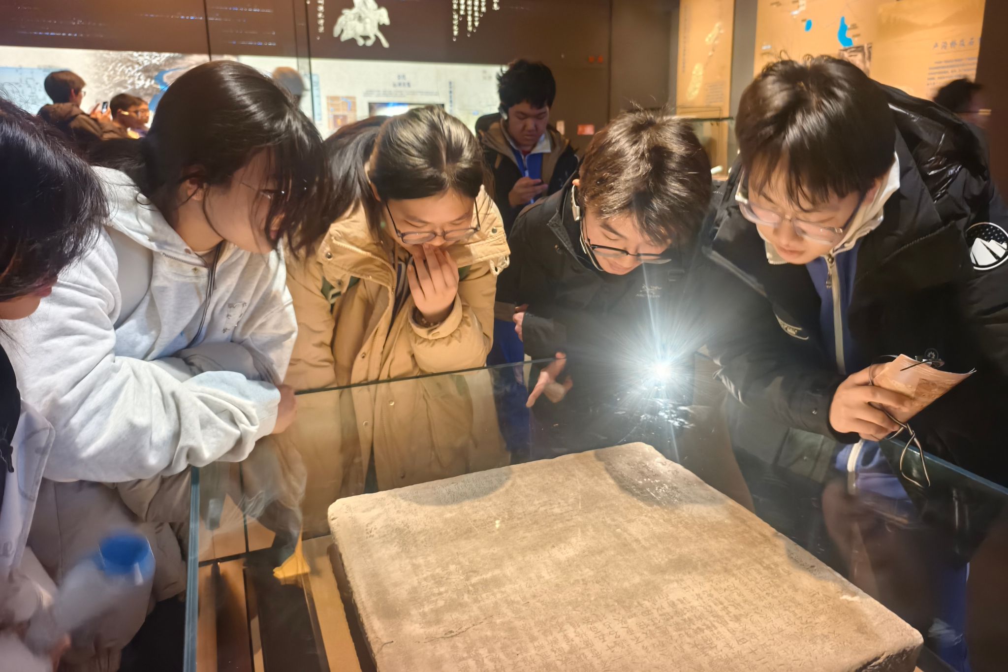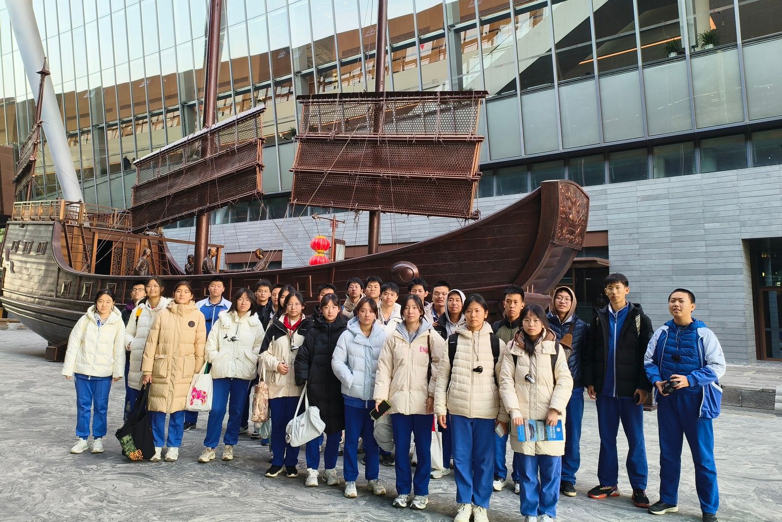 午后,师生们走进大运河博物馆,开启一场跨越千年的文化对话。在讲解员的引领下,大家认真聆听运河从邗沟初开至京杭贯通的演变历程,仔细端详景德镇窑青花瓷、漕运密符扇等珍贵文物,深入了解大运河作为“经济命脉、文化纽带”的历史价值。在“运河·不止”沉浸式体验区,裸眼3D技术重现了昔日帆樯络绎的漕运盛景,同学们仿佛置身古渡码头,直观感受南北交融的繁华景象。从博物馆的隔震技术到水利工程的智慧结晶,从文物背后的商贸故事到运河孕育的民俗文化,大家在聆听、观察与体验中,深刻领会了中华文明的博大精深。
