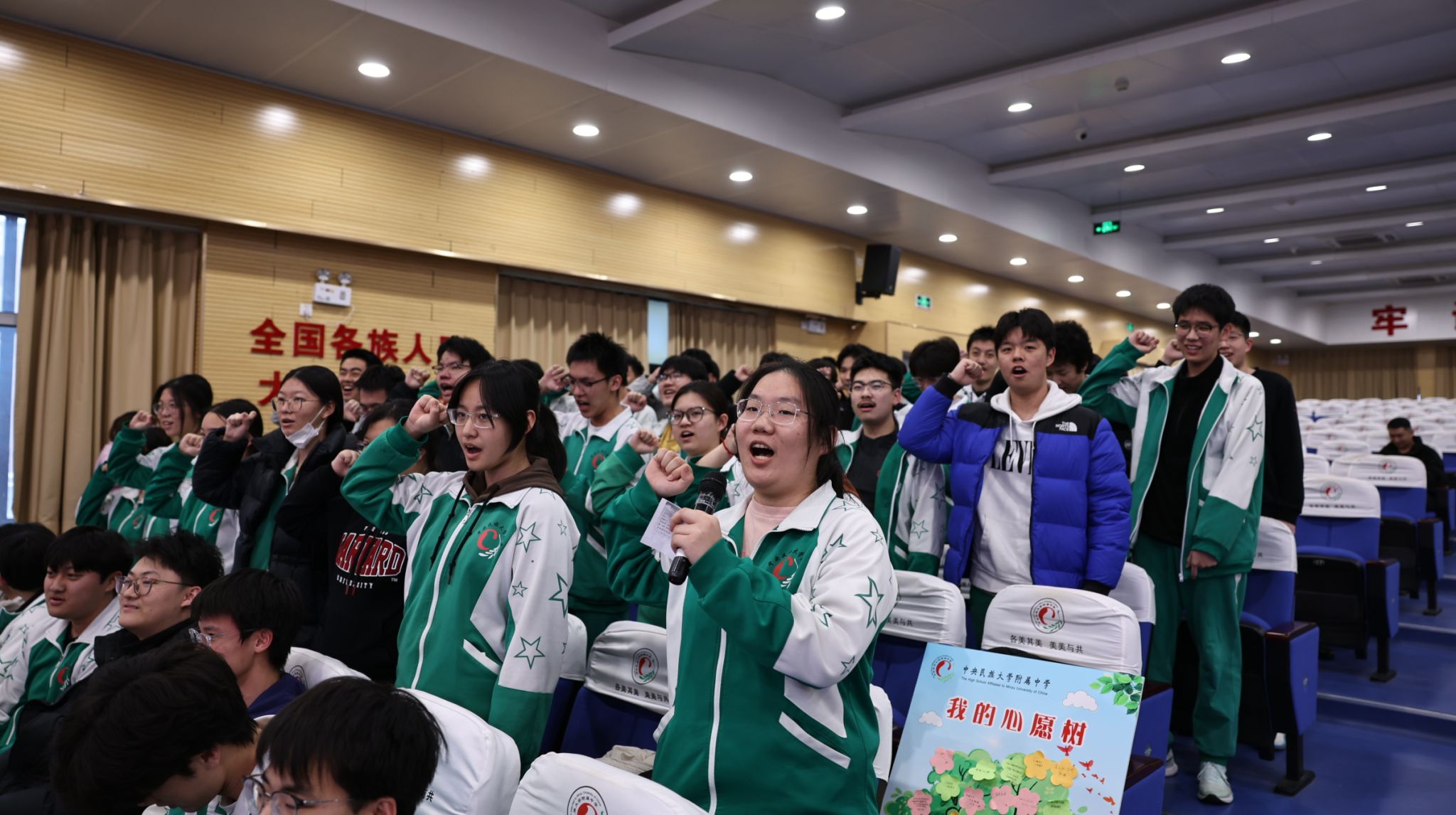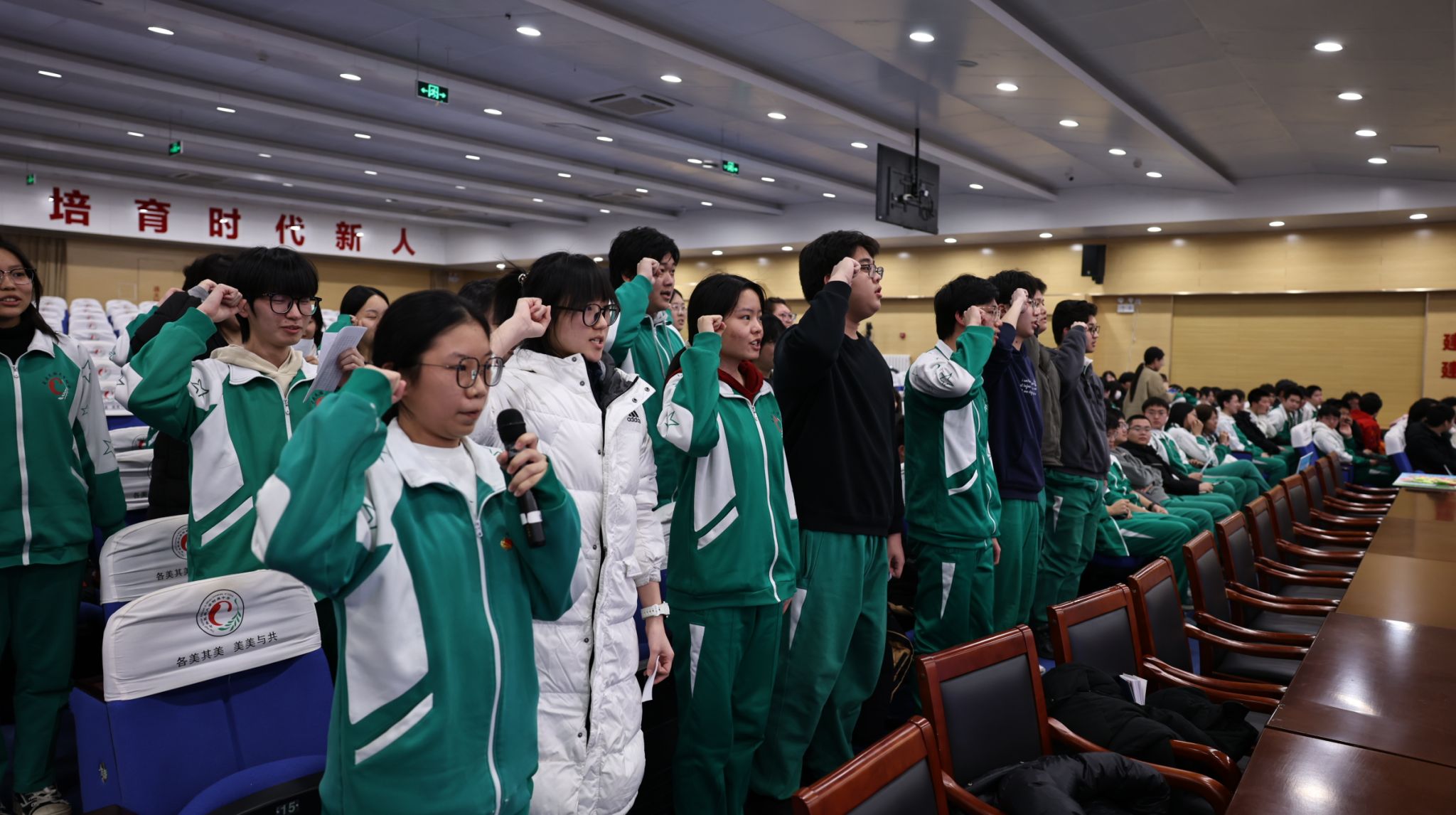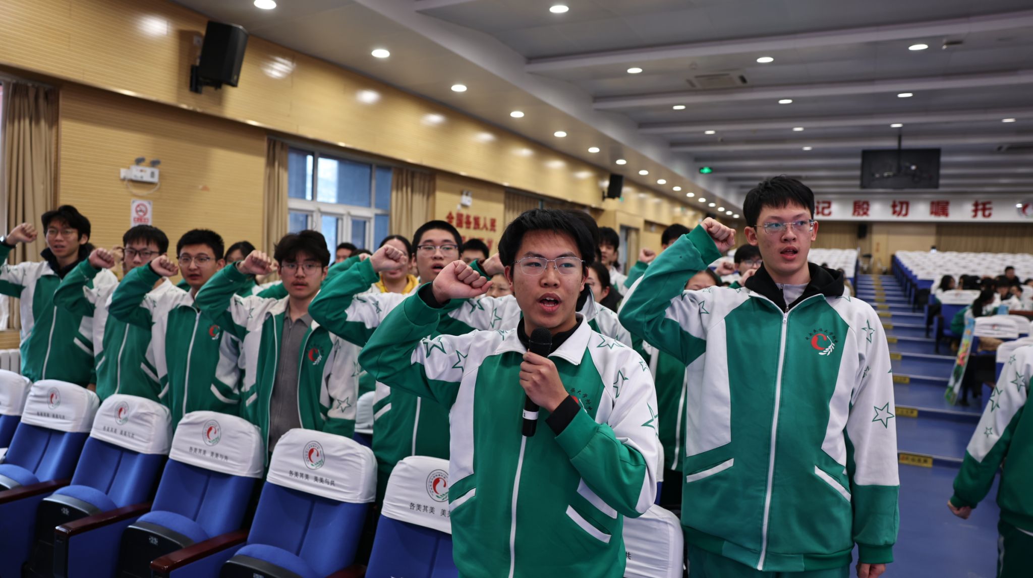 随后,全体学子起立,右拳高举,以青春的名义许下不悔的誓言: