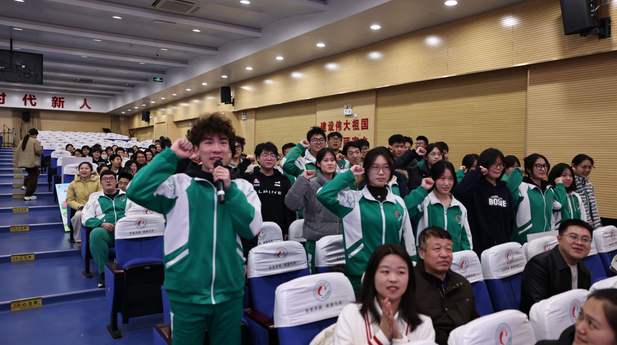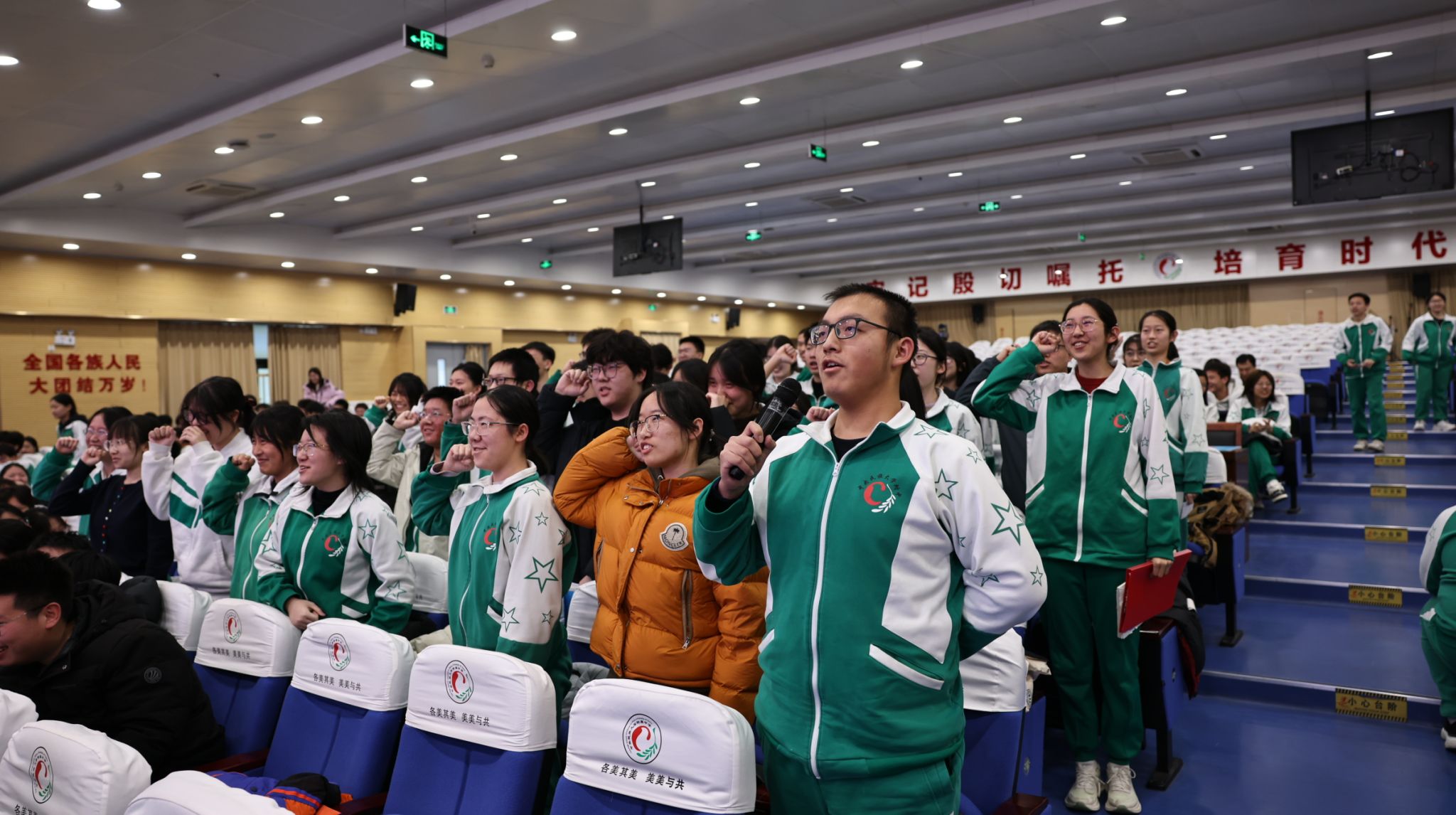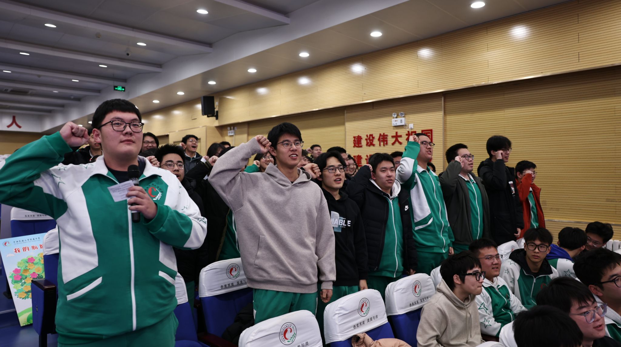 随后,全体学子起立,右拳高举,以青春的名义许下不悔的誓言: