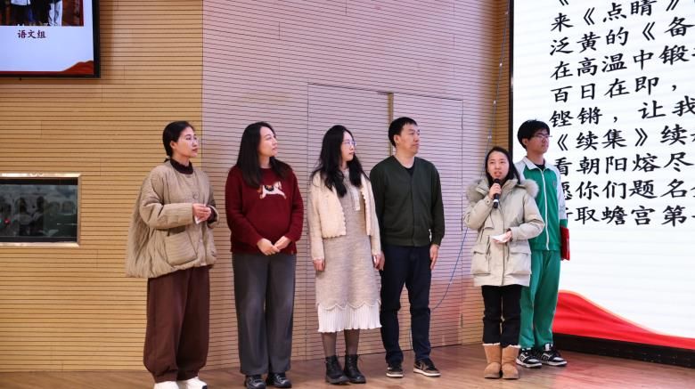 “甘将心血化时雨,润出桃花一片红。”许崇娜老师以《各美其美赴山海,美美与共写华章》为题,为学子们送上三重“美”的期许——各美其美的成长、美人之美的携行、天下大同的担当。她将校训融入百日征程,让“共美教育”的种子在冲刺的土壤里生根发芽。