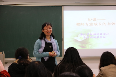 海淀区教研员来我校做说课培训讲座 2016年10月27日,我校邀请海淀区教师进修学校教研员孙铁玲老师来校为青年教师做了题为《说课--教师专业成长的有效形式》的培训讲座。 孙铁玲老师是北京市优秀教师、市级骨干教师,...