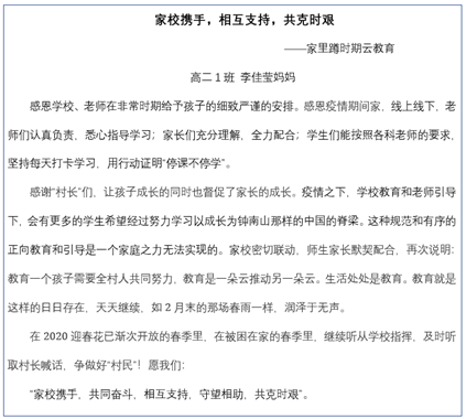 突如其来的肺炎疫情,虽然让人与人相隔很远,但却让心贴得更近。隔离病毒,但不隔离爱。在这场抗疫之中,无数人民主动请战,成为志愿者,走到疫情防控的基层去。 我们虽然不能像他们一样,走出家门,去为社会服务。但...