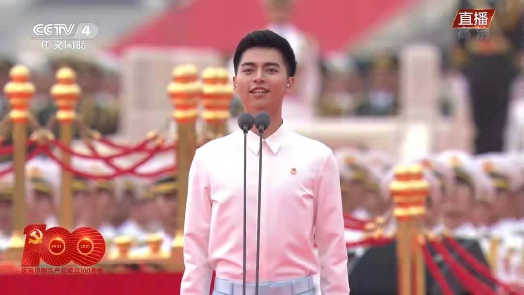 今天,在庆祝中国共产党成立100周年大会上,共青团员和少先队员们面向天安门城楼献词,表达年轻一代对党的生日祝福。