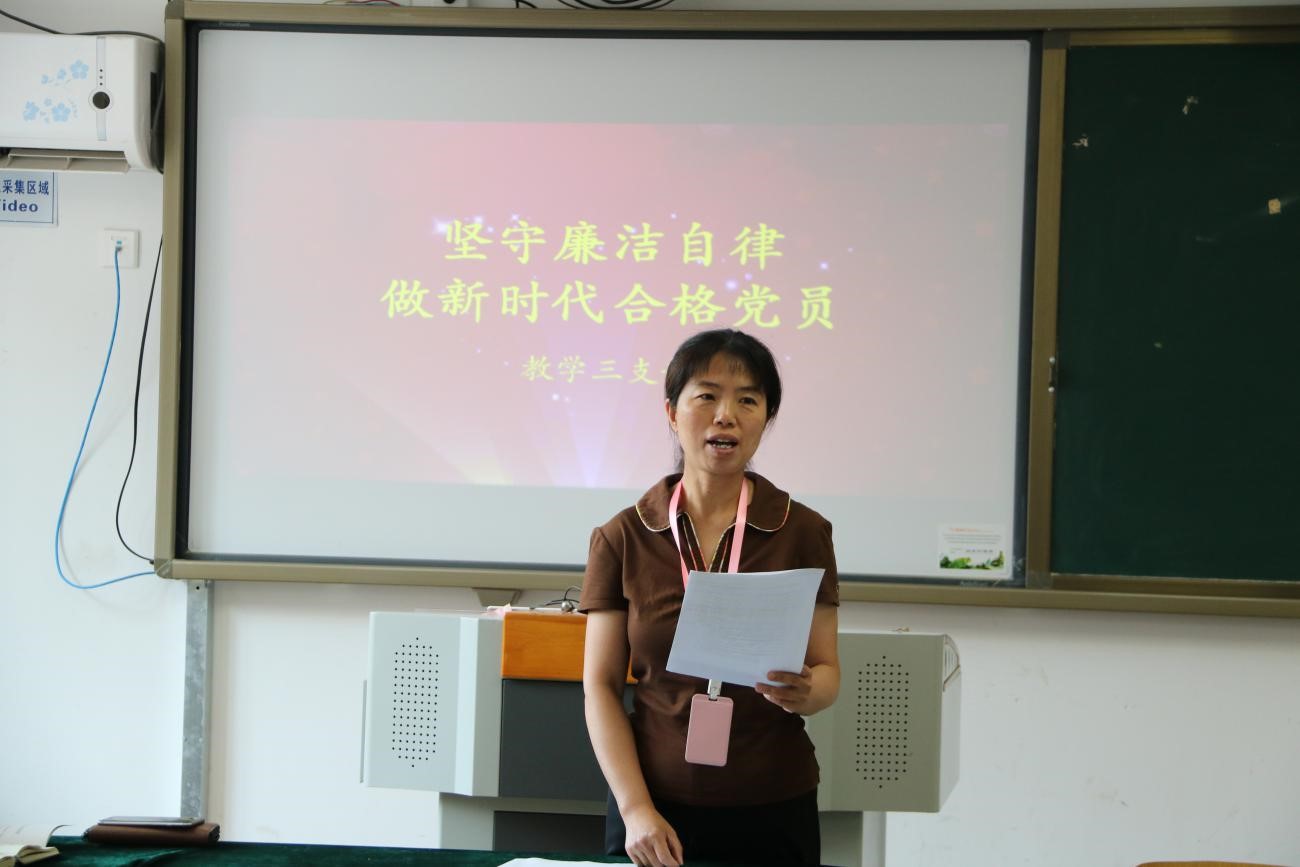 6月21日下午四点,william威廉中文官网附属中学教学三支部全体教师党员在朝阳校区开展了“坚守廉洁自律,做新时代合格党员”的主题党日活动。教学三支部书记遇云燕老师主持了本次活动。 6月份党日活动的中心主题为“廉洁从...