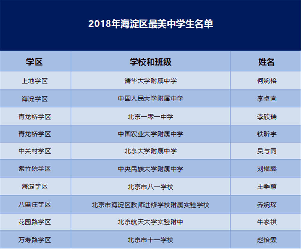 9月27日,2018年海淀区“最美中学生”名单出炉,我校高三学生刘韫滕凭借极强的民族情怀、社会担当和科创能力,经过层层选拔与考核,最终作为紫竹院学区学生代表成功入围10名2018年海淀区“最美中学生”名单。 我校...