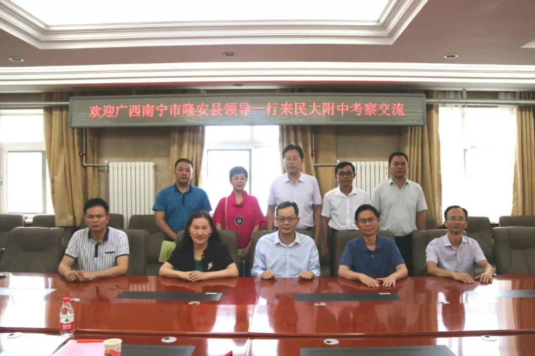 9月4日-5日,广西隆安县委书记吴朝晖一行先后到我校海淀校区、朝阳校区和民大附中丰台实验学校交流学习。 9月4日下午,我校党委书记佟丽娟、副校长唐洪波、党办校办主任韩晓原、教务处副主任刘舒婷在海淀校区与对方座...