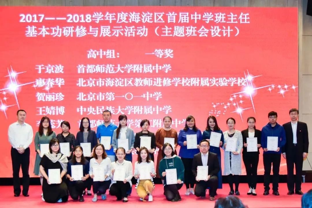 9月26日,海淀区教育系统召开2018年海淀区中学教育工作会。我校王婧博老师在海淀区2017—2018年度首届中学班主任基本功研修与展示活动中荣获高中组一等奖,海淀区教育系统的领导为获奖教师颁发了荣誉证书。 王婧博,...